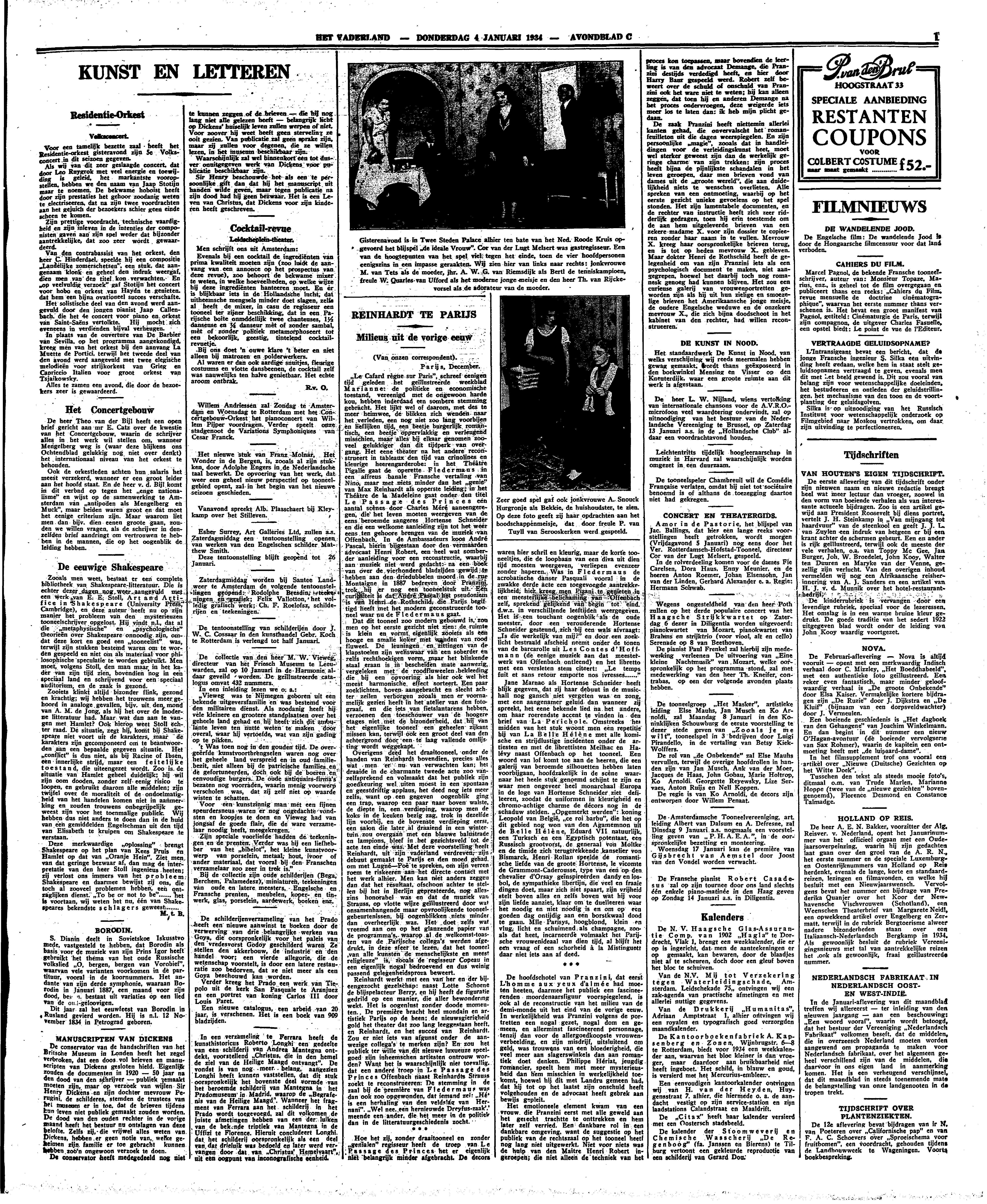 Zooals men weet, bestaat er een complete bibliotheek van Shakespeare-litteratuur. Die is echter dezer dagen nog weer aangevuld met een werk van E.E. Stoll, Art and artifice in Shakespeare (University Press, Cambridge), en deze auteur heeft nu op zijn manier het probleem van den mysterieuzen tooneelschrijver opgelost. Hij vindt n.l., dat al die ‘metaphysische’ en ‘psychologische’ theorieën over Shakespeare onnoodig zijn, omdat deze kort en goed een ‘toneelist’ was, terwijl zijn stukken bestemd waren om te worden gespeeld en niet om als materiaal voor philosophische speculatie te worden gebruikt. Men moet, volgens Stoll, den man maar in het kader van zijn tijd zien, bovendien nog in een speciaal land en schrijvend voor een speciaal auditorium, en de zaak is gezond.