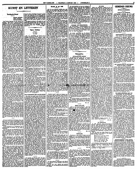 A.M. Hammacher bespreekt het werk van Renoir. Elisabeth de Roos geeft in haar uitmuntende ‘Kroniek der Fransche letteren’ de volgende karakteristiek van F. Céline: Voyage au Bout de la Nuit: ‘Bij Céline is er een probleem; alleen is deze schrijver intellectueel zoo ongenuanceerd, dat het zich tot een kreet of een toon van een stem laat reduceeren. Het verhaal wordt verteld door een gerevolteerde, een dokter die in den oorlog op een onschadelijke manier “onwijs” geworden is, die door Amerika en Afrika zweeft en weer terugkomt in Parijs om in het laatste hoofdstuk toeschouwer te zijn van een moord door een vrouw op zijn vriend gepleegd, 's nachts in een taxi. Het boek heeft zonder twijfel de kracht van een overtuiging; het heeft ook de fout van een redenaarseffect dat zijn doel mist. Het is zeshonderd bladzijden lang in een volkschen toon geschreven, met de ruwheid daarvan, maar ook met de defectueuze en hopeloos omslachtige syntaxis van het volk. De opstandigheid, eigenlijk meer nog de weerzin van Céline lijken zoo echt, en bovendien zoo gegrond, dat men in een korten roman ieder stijlprocédé aanvaard zou hebben. Bij de lengte die het boek heeft, is het misschien theoretisch nog verdedigbaar, maar in werkelijkheid zoo geforceerd dat ook de echtheid van den schrijver er betwijfelbaar door wordt. Het lijkt of Céline koppig en blindelings in een zelfbegoocheling geraakt is; zoekend naar een verteltoon die den weerzin en de wanhoop niet alleen zou weergeven maar zou zijn, en terechtkomend in een litteraire trucquage. Een onmiskenbaar plastisch talent, oogenblikken van verwoede zeggingskracht, elders weer opgeheven door dik-schilderachtige effecten en de gemakkelijkheid van een ongenuanceerde, egaal en breed uitgemeten platvloerschheid. Schadenfreude over eigen ontgoocheling en een picareske verschuiving van situaties en decors verdrinken in een stijl die rhetorisch wordt van eentonigheid. Triest einde van een verbittering die door de stof van het boek toch volkomen gerechtvaardigd wordt, van intransiganten tegenzin in iedere manifestatie van het leven, want het leven laat toe dat de tegenwoordige mensch, die bovendien niet meer hopen kan, reddeloos en machteloos slachtoffer van maatschappij is.’