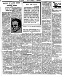 Naar aanleiding van de persoonlijkheid van Willem Elsschot heb ik over het taalchauvinisme der Vlamingen en hun daaraan verbonden provincialistische mentaliteit reeds geschreven. Het is een heuglijk feit, dat daarop overal reactie is waar te nemen. De jonge generatie van Vlaamsche auteurs staart zich niet meer blind op den grooten Gezelle en den niet minder grooten Stijn Streuvels, maar zoekt nauwer contact met de stroomingen in de omliggende landen, vooral Frankrijk en Nederland. En nu is het bijzonder opvallend, dat zich in dit streven reeds duidelijk twee richtingen afteekenen. De eerste vertegenwoordigen schrijvers als Jan van Nijlen en Willem Elsschot, die zich in hun taalgebruik en probleemstelling volkomen hebben aangesloten bij het Noorden en met hetzelfde recht bij de de Nederlandsche litteratuur kunnen worden gerekend als b.v. Marsman of Helman. Men vergeet, als men werk van hen leest, doorgaans, dat men met Vlamingen te doen heeft, omdat men van het Vlaamsche provincialisme eigenlijk weinig of niets meer merkt.