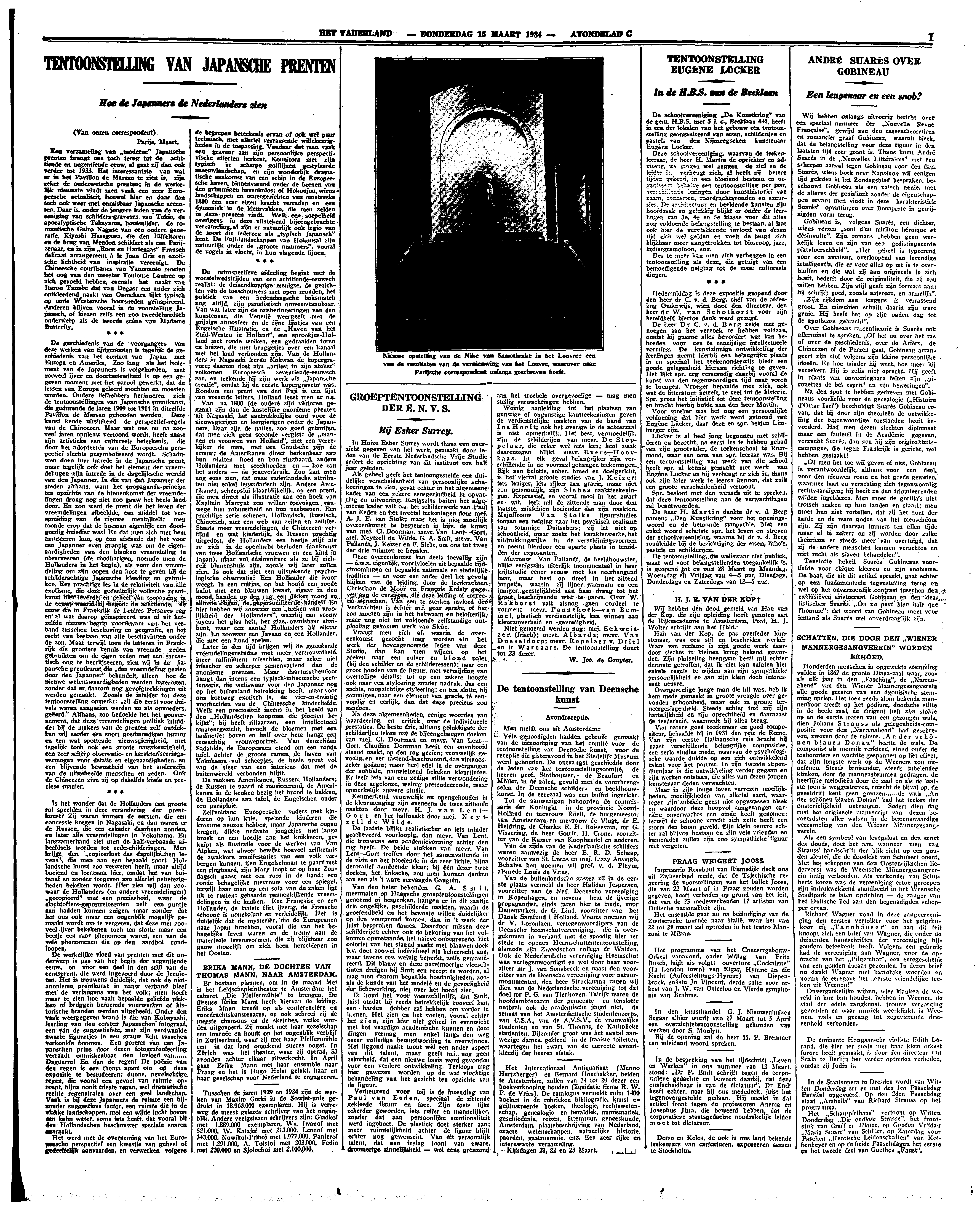 Wij hebben onlangs uitvoerig bericht over een speciaal nummer der Nouvelle Revue Française, gewijd aan den rassentheoreticus en romancier graaf Gobineau, waaruit bleek, dat de belangstelling voor deze figuur in den laatsten tijd zeer groot is. Thans komt André Suarès in de Nouvelles Littéraires met een scherpen aanval tegen Gobineau voor den dag. Suarès, wiens boek over Napoleon wij eenigen tijd geleden in het Zondagsblad bespraken, beschouwt Gobineau als een valsch genie, met de allures der genialiteit zonder de eigenschappen ervan; men vindt in deze karakteristiek Suarès' opvattingen over Bonaparte in gewijzigden vorm terug.