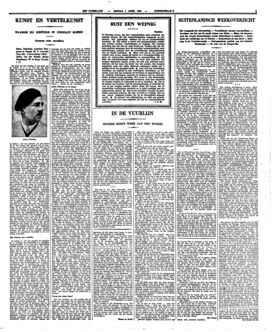 Iedere actie wekt reactie. Zoo is het ook gesteld in de verhouding van de officieele litteratuur en de vertelling. De officieele prozaïsten, die niet of slecht vertellen kunnen, hebben natuurlijk heimelijk een kwaad geweten tegenover die argelooze, boeiende vertellers, die zoo gemakkelijk schrijven en zoo zonder speciale inspanning weten te pakken. Het gevolg is, dat zij op een gegeven oogenblik den eenvoudigen verteller plotseling ontdekken. De prozaïsten zien, hoe de verteller gelezen wordt, stukgelezen; zij nemen dan ook eens een van zijn boeken ter hand en vinden allerlei aardige dingetjes, waaraan zij zelf nooit zoozeer gedacht hadden. Dan kloppen de prozaïsten de verteller vriendelijk, kameraadschappelijk op den schouder en noodigen hem uit binnen te treden in het domein der kunst. Van dat tijdstip af is de verteller kunstenaar en heeft hij alle consequenties van dien te aanvaarden.