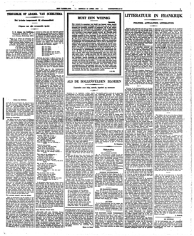 Dit laatste zeg ik niet als dood compliment aan het adres van iemand, dien men eigenlijk beter zou kunnen vergeten. Het heeft geen zin, Adama van Scheltema, tien jaar na zijn overlijden, te gaan verheerlijken als den grootsten en interessantsten dichter van Nederland, of zelfs van zijn generatie; maar het is even onbillijk hem te beschouwen (zooals onder invloed van de gecompliceerder dichters der volgende generatie meermalen is geschied) als uitsluitend een vlotten liedjeszanger voor de massa. Zeker heeft de cultus van de S.D.A.P. dezen auteur meer kwaad dan goed gedaan, zooals trouwens iedere cultus het beeld van de persoonlijkheid vervormt en misvormt. Een dichter, dien men kan declameeren loopt echter nog meer gevaar slachtoffer te worden van een cultus dan één, wiens woorden minder muziek en meer associatieve en begripselementen bevatten; en op Adama van Scheltema hebben de declamatoren hun lusten geweldig bot kunnen vieren. De tegenzijde van des dichters poëzie, minder voor populariteit geschikt, heeft daarvan geen voordeel gehad; ook zijn eenzaamheid en ontgoocheling moesten, bij wijze van spreken en misschien ook wel in letterlijken zin, gedeclameerd worden, want het eene sleept het andere mee. Bovendien achtte men zich aan de ‘reputatie’ van een zoo gevierd poëet verplicht, hem grooter voor te stellen dan hij was, intellectueel grooter vooral, en ook daardoor deed men hem onrecht. Wie wel eens in de theoretische werken van Adama van Scheltema (De Grondslagen eener Nieuwe Poëzie; Kunstenaar en Samenleving) heeft gelezen, weet, dat hij als essayist onklaar was, van goeden wille en afkeerig van de aesthetische aanstellerij der Tachtigers, maar niet bij machte het Tachtiger ideaal te vervangen door een houdbare eigen leer; Adama van Scheltema's voorliefde voor de ‘gemeenschapskunst’ bleef een intuïtieve voorliefde voor den eenvoud en de ongecompliceerdheid, waaraan achteraf een intellectueele rechtvaardiging moest worden toegevoegd. Deze rechtvaardiging kwam eigenlijk in hoofdzaak neer op een capitulatie zonder meer van den kunstenaar voor de allerbegrijpelijkste kunst (in plaats van de allerindividueelste expressie van Kloos), d.w.z. voor de helft plus één als aesthetische maatstaf, die natuurlijk niet aannemelijker is dan de ‘happy few’, waaraan de Tachtigers verknocht waren. Er is dus een stuk Adama van Scheltema, dat wel degelijk verantwoordelijk is voor den cultus, dien men zijn naam in zekere politieke kringen heeft gewijd; dit zij hier geconstateerd als een feit, niet als een verwijt, want de onzuiverheid van den cultus is niet de schuld van den dichter zelf.