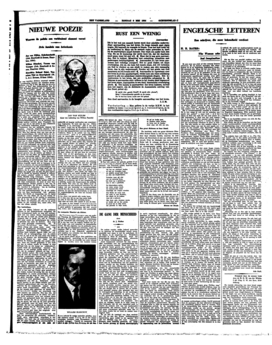 De Verzen van Vroeger van een andere Vlaming, die Nederlandsch schrijft, Willem Elsschot, in eenzelfde sobere editie verschenen bij Joh. Enschedé (de verzorging van deze poëzie is een lust voor de oogen), hebben een geheel ander, een veel zwaarder en dramatischer accent. Zij zijn, afgezien van de poëtische waarde, ook nog een interessant curiosum, omdat zij tusschen 1907 en 1910 geschreven zijn, en pas verleden jaar in een tijdschrift gepubliceerd door toedoen van vrienden van den dichter, die ze zelf had laten liggen.