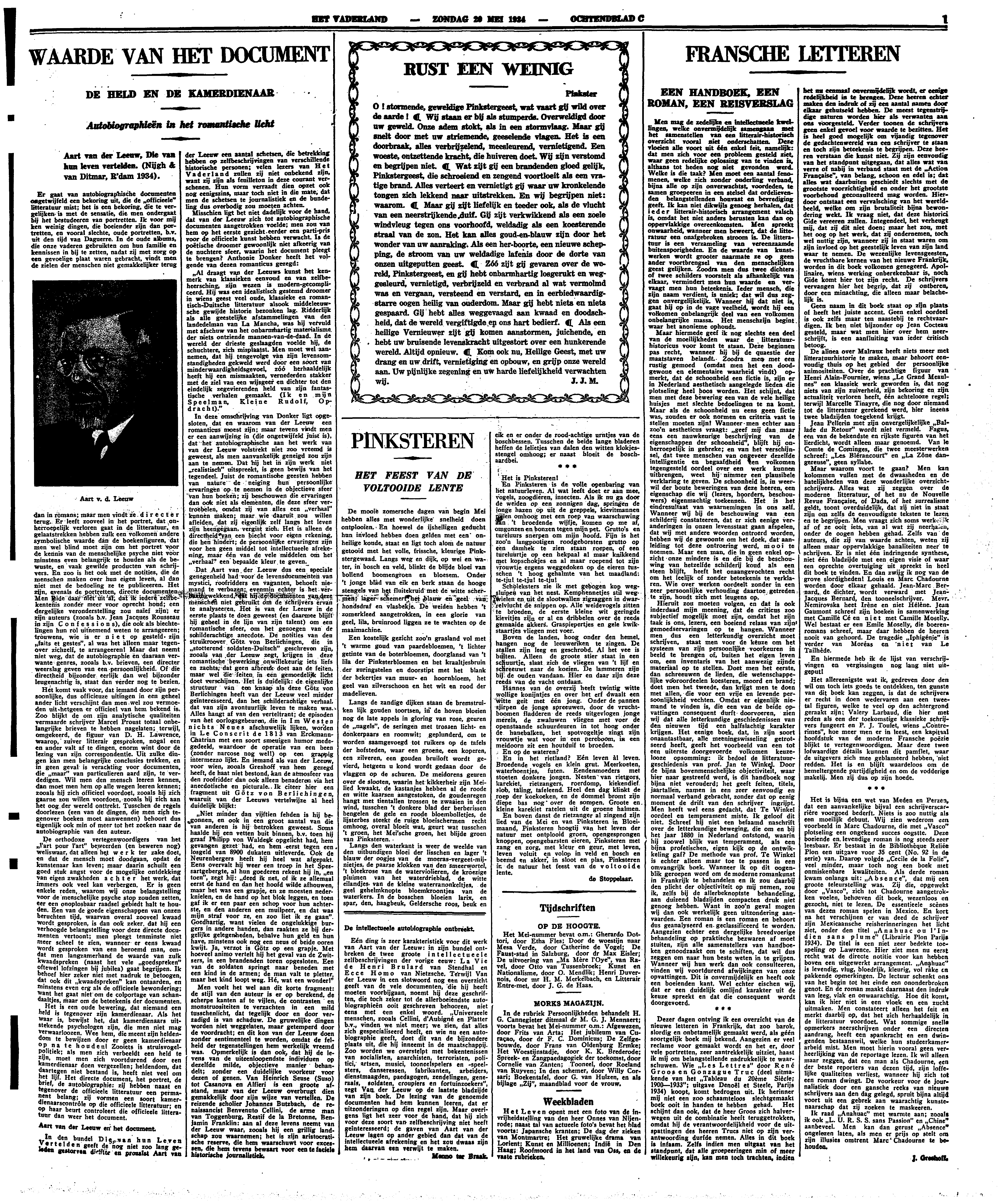 Aart van der Leeuw, Die van hun Leven vertelden (Nijgh & Van Ditmar, R'dam 1934).