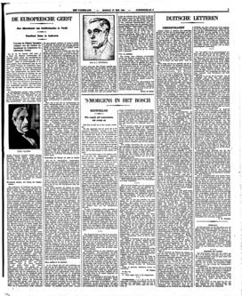 Het onderwerp, de toekomst van den Europeeschen geest, is, men zal het algemeen toegeven, zoowel van buitengewoon groot belang als buitengewoon moeilijk te omschrijven. Dat er zooiets als een Europeesche geestesgesteldheid bestaat valt niet te ontkennen; maar de moeilijkheden beginnen pas, als men zich er rekenschap van gaat geven, welke concreta nu precies tot dien ‘geest’ behooren, welke symptomen van het cultuurleven daarbij moeten worden thuisgebracht. De verslagen van de handelingen der conferentie geven van de heerschende meeningsverschillen een zeer duidelijk beeld; vrijwel alle deelnemers blijken zich een voorstelling te hebben gevormd van den Europeeschen geest; maar die voorstellingen, hoeveel gemeenschappelijke factoren zij ook mogen bevatten, loopen aanzienlijk uiteen, al naar gelang van de denkbeelden, waarvan de spreker de min of meer toevallige representant is. Het ligt niet in mijn bedoeling in deze Zondagskroniek, die beperkt is tot enkele kolommen, een overzicht te geven van de referaten; daarvoor zou ik een ruimte noodig hebben, die de beschikbare verre te buiten gaat; liever breng ik uit de besprekingen enkele punten naar voren, die mij bijzonder hebben getroffen, zij het dan positief of negatief.