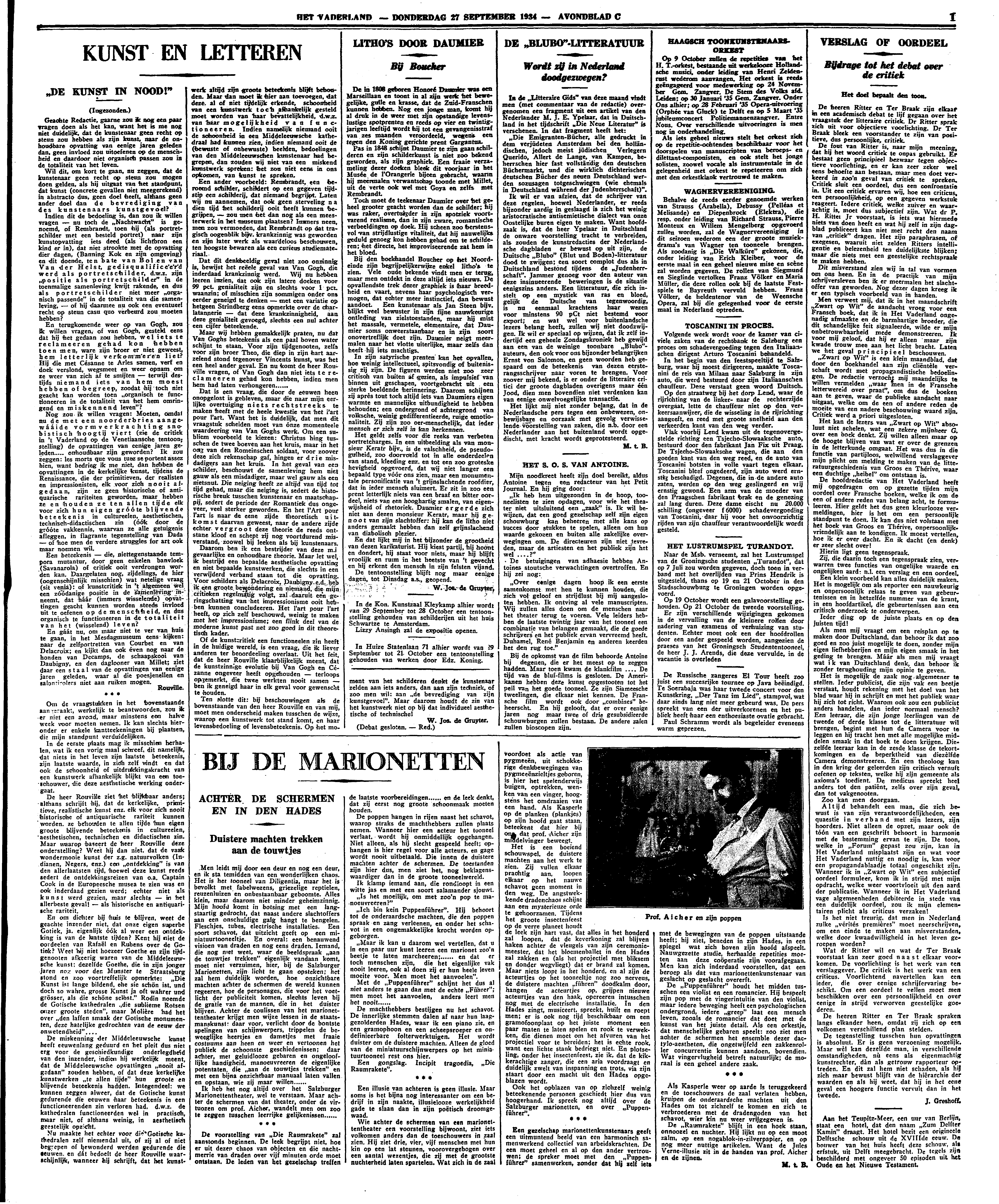 Ik wil ervan afzien dat de schrijver van deze regelen, hoewel Nederlander, er reeds bijzonder aardig in geslaagd is zich het weinig aristocratische antisemitische dialect van onze Oostelijke buren eigen te maken. Want hoofdzaak is dat de heer Ypelaar in Duitsland de onware voorstelling tracht te verbreiden, als zouden de kunstredacties der Nederlandse dagbladen er bewust op uit zijn, de Duitse ‘blubo’ (Blut und Boden)-literatuur dood te zwijgen; een soort complot dus als in Duitsland bestond tijdens de ‘Judenherrschaft’. Jammer genoeg voor de auteur van deze insinuerende beweringen is de situatie enigszins anders. Een literatuur die zich instelt op een mystiek van ras en bloed, gelijk de Duitse van tegenwoordig, is nu eenmaal krachtens haar wezen voor minstens 90% niet bestemd voor export; en wat wel voor buitenlandse lezers belang heeft zullen wij niet doodzwijgen. Ik wil er speciaal op wijzen dat ikzelf indertijd een gehele zondagskroniek heb gewijd aan een van de weinige toonbare ‘Blubo’-auteurs, de ook voor ons bijzonder belangrijke Ernst von Salomon, en geen woorden heb gespaard om de betekenis van deze eersterangsschrijver naar voren te brengen. Voorzover mij bekend is er onder de literaire critici der grote dagbladen overigens maar één Jood, die men bovendien niet verdenken kan van enige onwelgevoeglijke transactie.