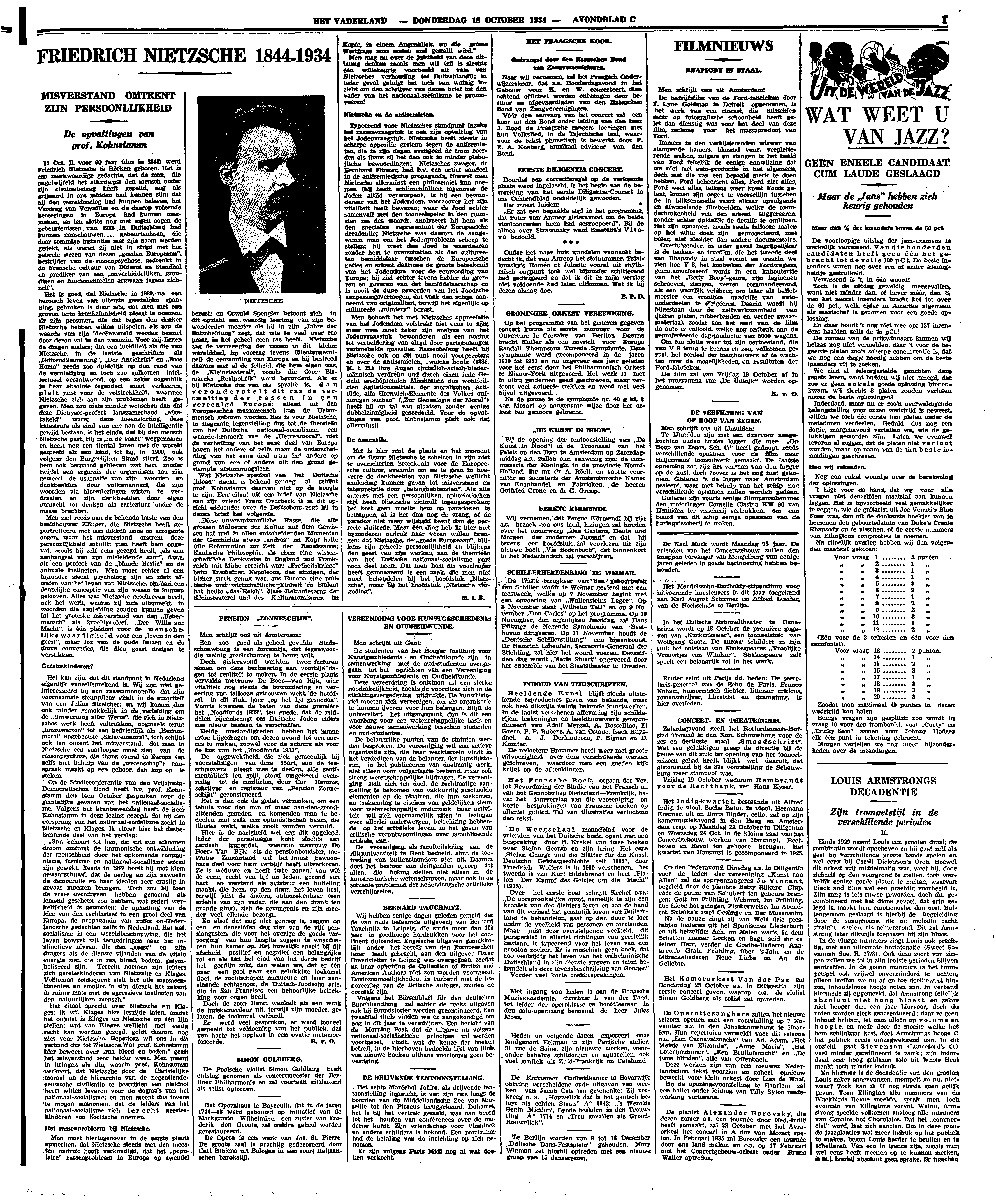 Dit artikel verscheen als Friedrich Nietzsche 1844-1934 in Verzameld Werk, deel 4, pagina 311. De oorspronkelijke tekst van het artikel is voorlopig alleen op de krantenpagina te lezen.