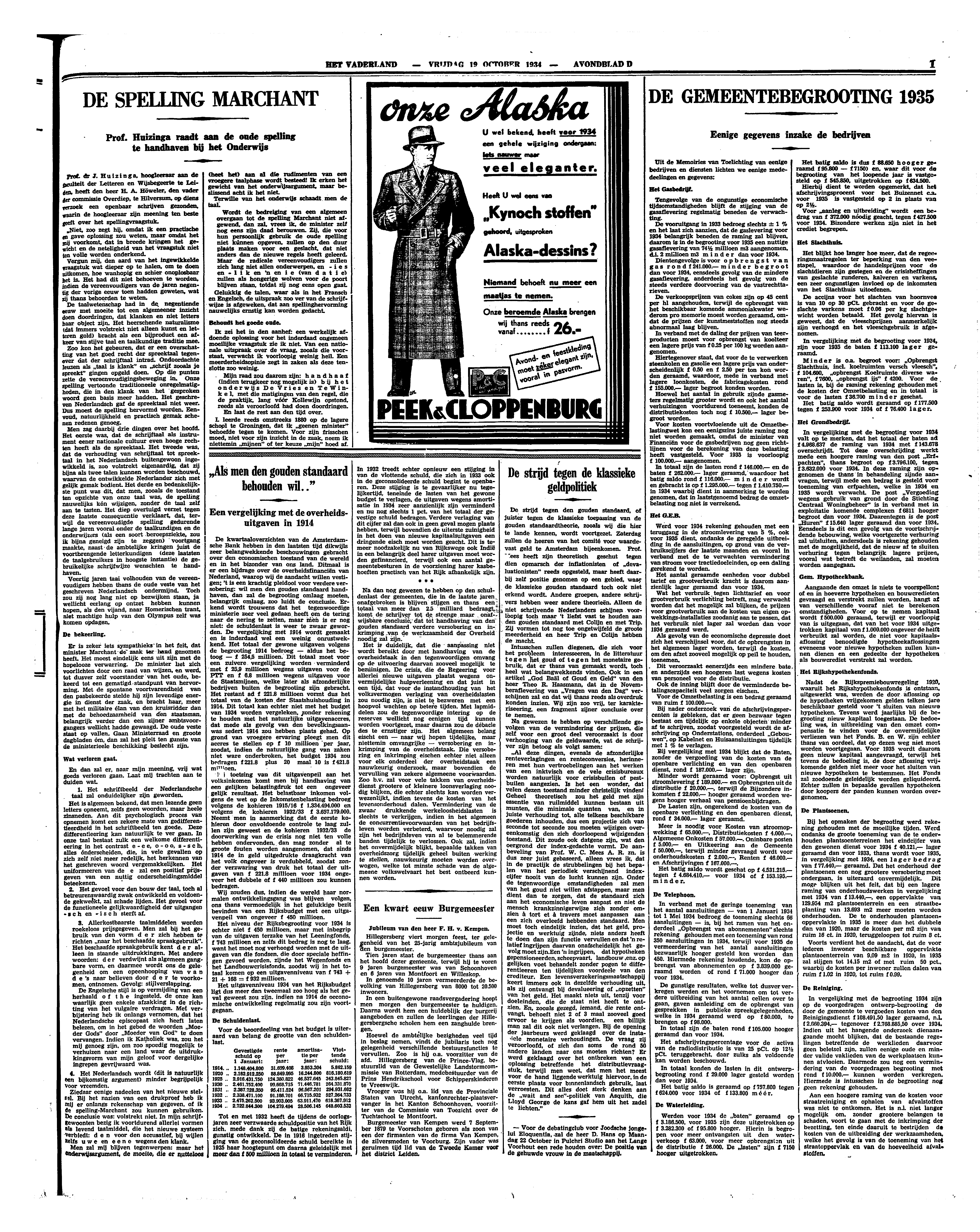Prof. Huizinga raadt aan de oude spelling te handhaven bij het Onderwijs