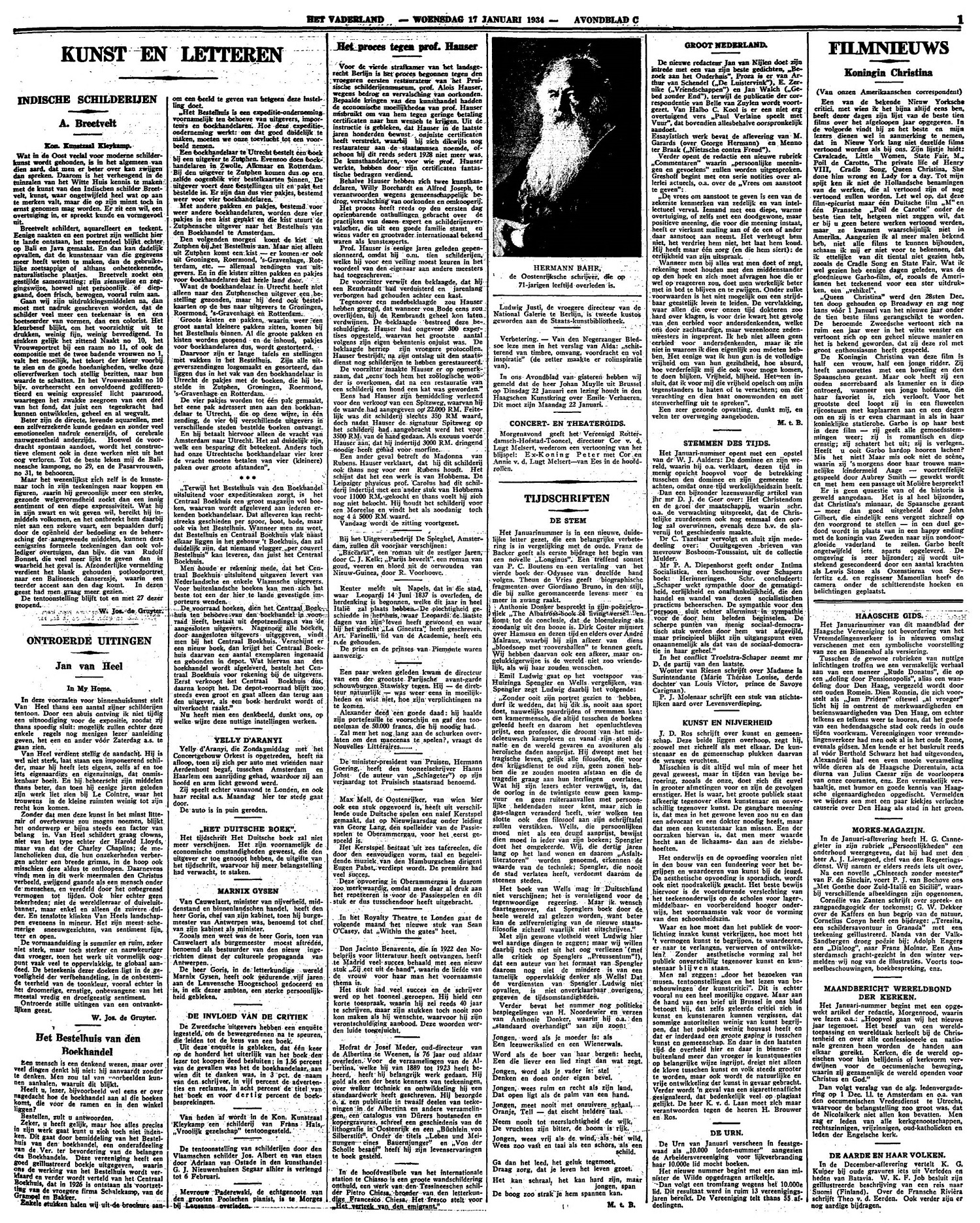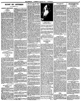 Het Januarinummer is in een nieuwe, duidelijke letter gezet, die een belangrijke verbetering is met de oude. Franz de Backer geeft als eerste bijdrage het begin van een novelle ‘Longinus’. Een treffend sonnet van P.C. Boutens en een vertaling van het vierde boek der Odyssee van dezelfde hand volgen. Theun de Vries geeft biographische fragmenten over Giordiano Bruno, in den stijl, die bij zulke geromanticeerde levens meer en meer in zwang raakt.