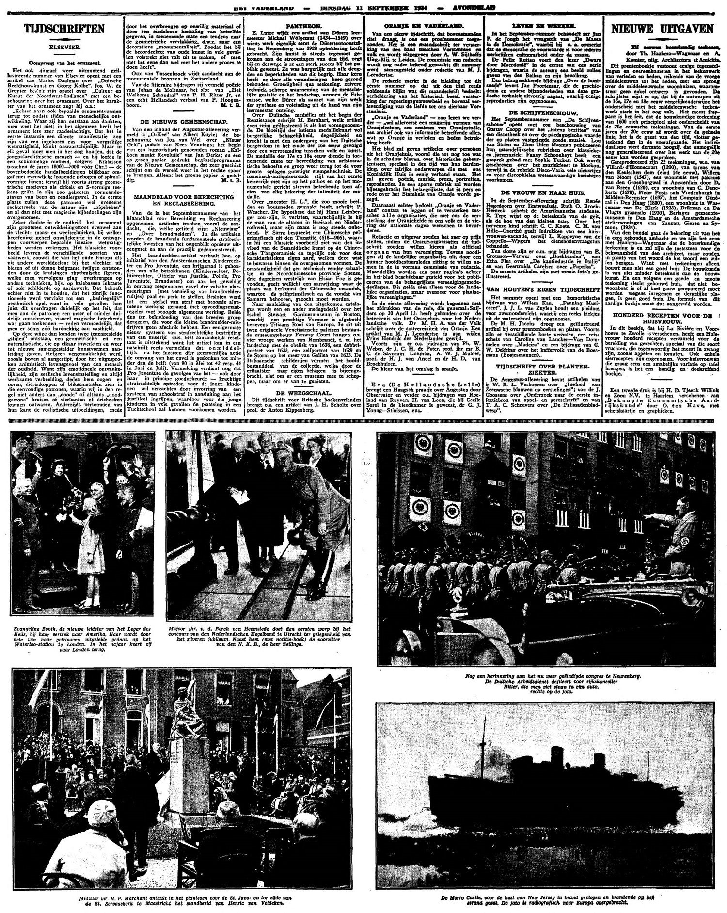 Het ook ditmaal weer uitmuntend geïllustreerde nummer van Elsevier opent met een artikel van Marius Daalman over ‘Duitsche Beeldhouwkunst en Georg Kolbe’. Jos. W. de Gruyter besluit zijn opstel over ‘Cultuur en Kunst der Noordwest-Indianen’ met een beschouwing over het ornament. Over het karakter van het ornament zegt hij o.a.: