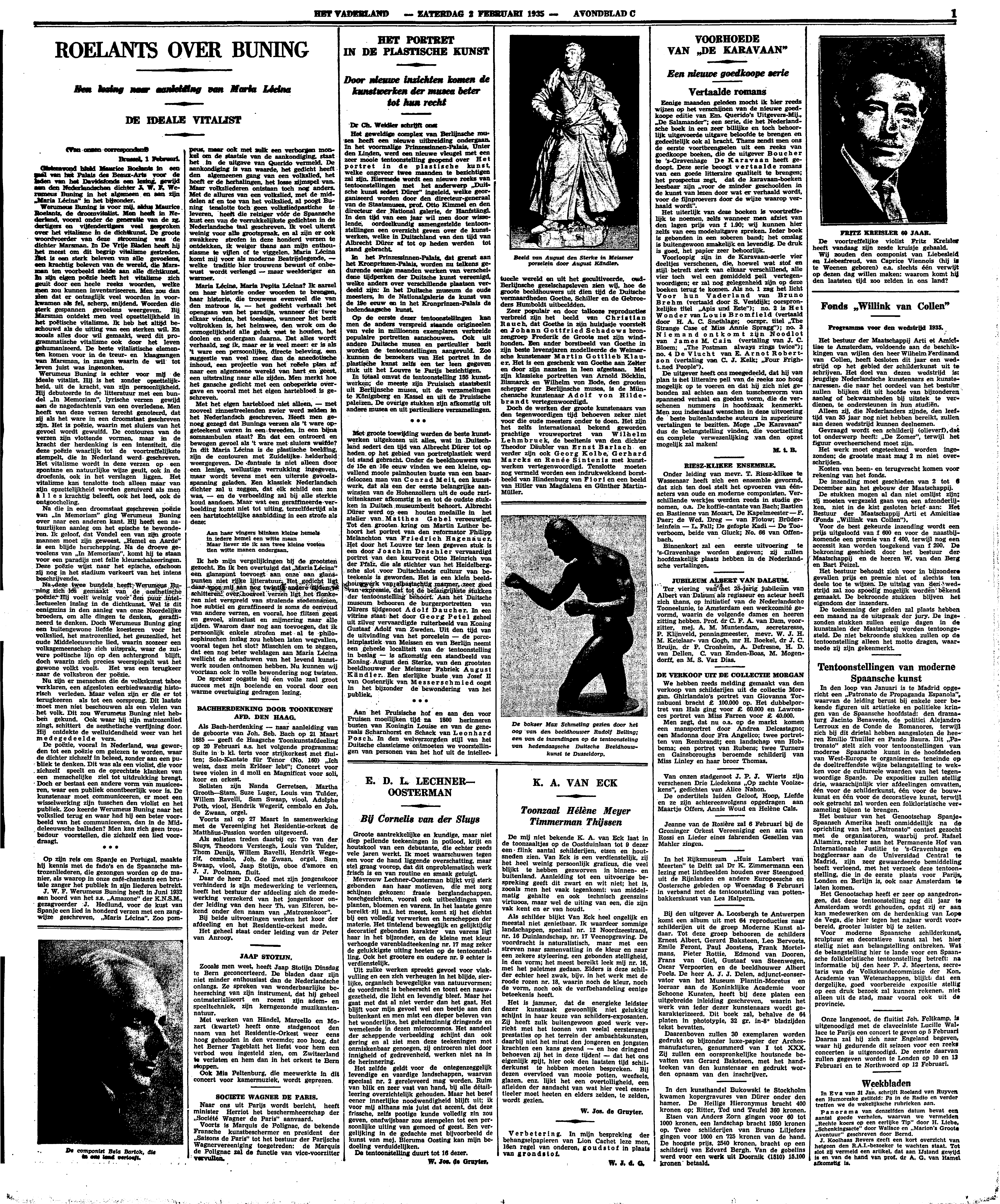 De uitgever heeft ons meegedeeld, dat hij van plan is het litteraire peil van de reeks zoo hoog mogelijk op te voeren en dat hij zich niet gebonden zal achten aan den tusschenvorm van spannend verhaal en goeden vorm, die de verschenen nummers in hoofdzaak kenmerkt. Men zou inderdaad wenschen in deze uitvoering de beste buitenlandsche auteurs in superieure vertalingen te bezitten. Moge ‘De Karavaan’ dus de belangstelling vinden, die voortzetting en complete verwezenlijking van den opzet mogelijk zal maken!