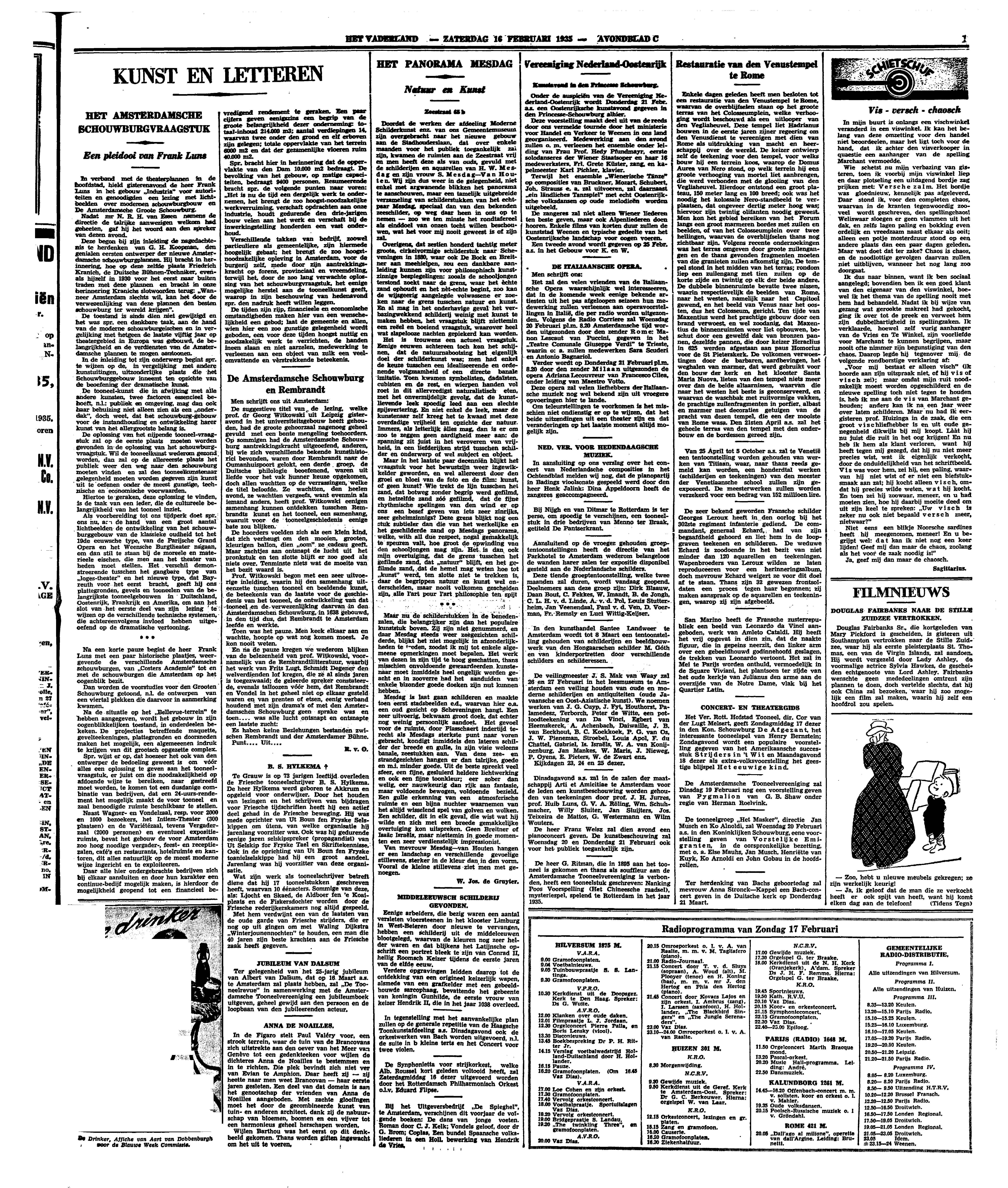 Wie schetst nu mijn verbazing van gisteren, toen ik voorbij mijn viswinkel liep en daar plotseling een uitdagend bordje zag prijken met: Versche zalm. Het bordje was gloednieuw, kennelijk pas afgeleverd. Daar stond ik, voor den completen chaos, waarvan in de kranten tegenwoordig zooveel wordt geschreven, den spellingchaos! Weliswaar sloegen er geen vlammen uit het dak, en zelfs lagen paling en bokking even ordelijk en vreedzaam naast elkaar als ooit; alleen een potje mosterdzuur stond op een andere plaats dan een paar dagen geleden. Maar wat doet dat ter zake? Chaos is chaos, en de noodlottige gevolgen daarvan zullen niet uitblijven, wanneer het nog lang zoo doorgaat.