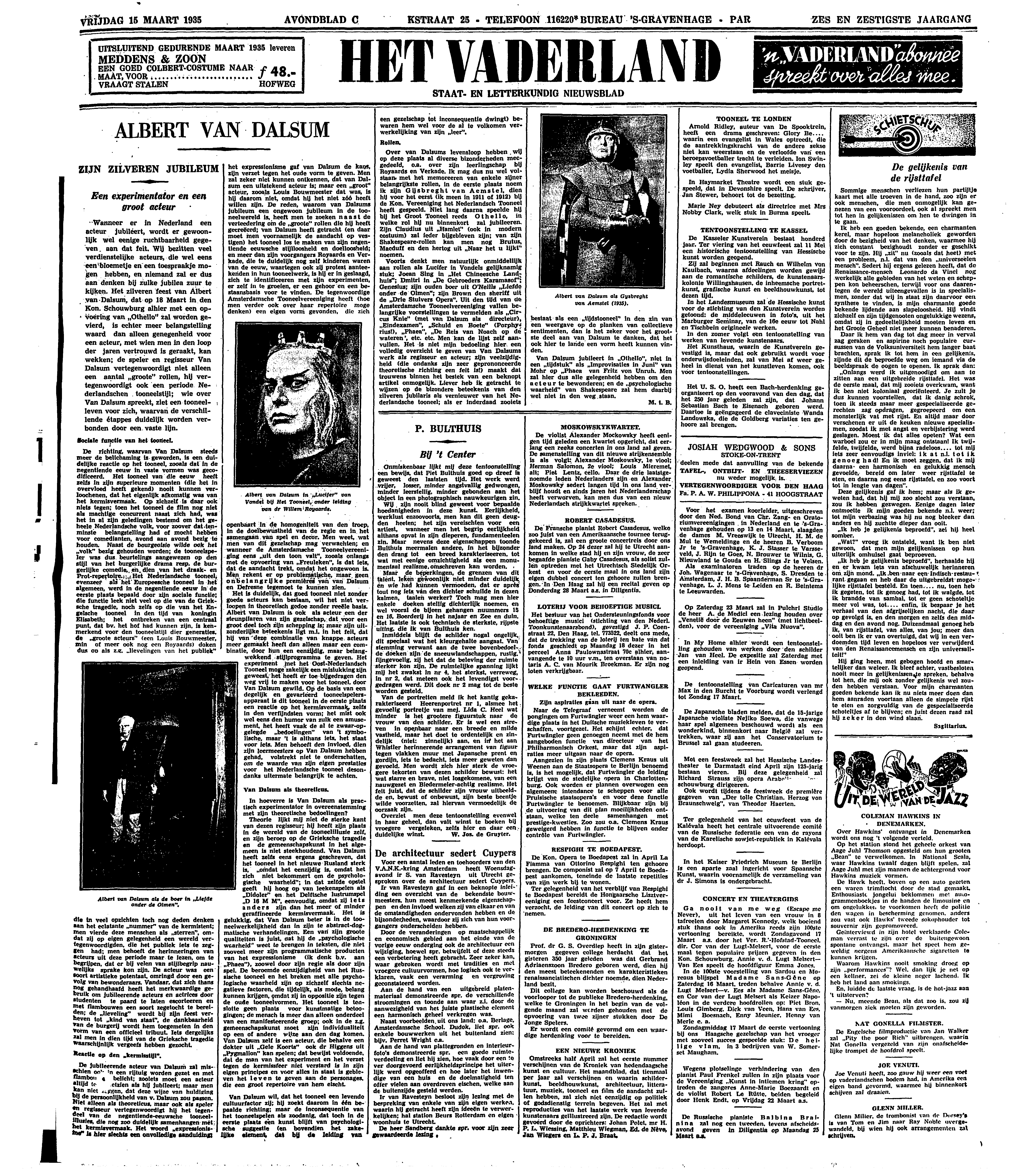 Ik heb een goeden bekende, een charmanten kerel, maar hopeloos melancholiek geworden door de bezigheid van het denken, waarmee hij zich constant bezighoudt zonder er geschikt voor te zijn. Hij ‘zit’ nu (zooals dat heet) met een probleem, n.l. dat van den ‘universeelen mensch’. Sedert hij ergens gelezen heeft, dat de Renaissance-mensch Leonardo da Vinci nog werkelijk alle gebieden van het weten en scheppen kon beheerschen, terwijl voor ons daarentegen de wereld uiteengevallen is in specialismen, zonder dat wij in staat zijn daarvoor een synthese te vinden, is mijn charmante goede bekende lijdende aan slapeloosheid. Hij vindt zichzelf en zijn tijdgenooten ongelukkige wezens, omdat zij in gedeeltelijkheid moeten leven en het Groote Geheel niet meer kunnen benaderen.