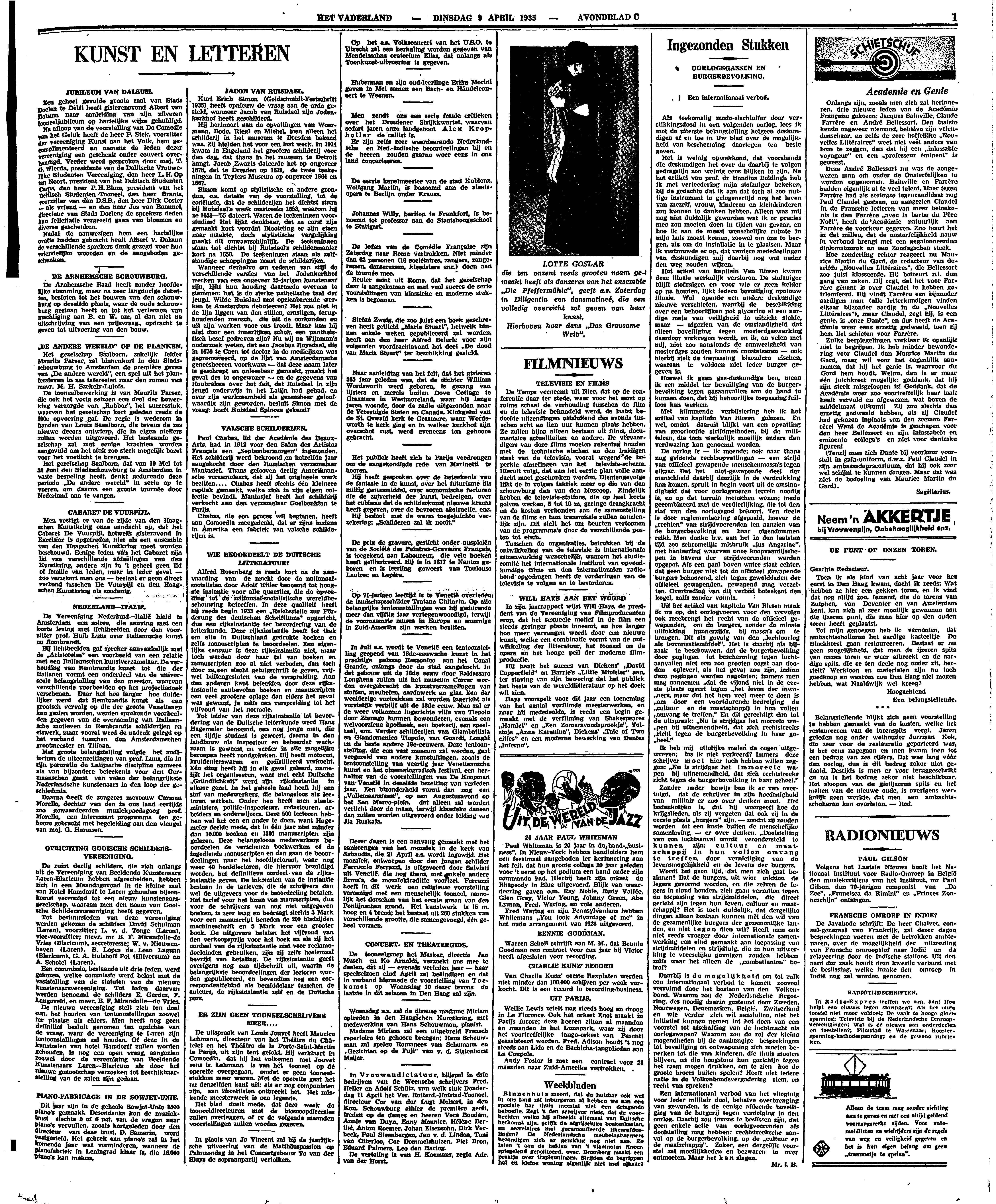 Zulke bespiegelingen verklaar ik openlijk niet te begrijpen. Ik heb minder bewondering voor Claudel dan Maurice Martin du Gard, maar wil voor het oogenblik aannemen, dat hij het genie is, waarvoor du Gard hem houdt. Welnu, dan is er maar één juichkreet mogelijk: goddank, dat hij zijn steek misgeloopen is! Goddank, dat de Académie weer zoo voortreffelijk haar taak heeft vervuld en afgewezen, wat boven de middelmaat uitkomt! Zij zou slechts dan ernstig gedwaald hebben, als zij Claudel had gekozen inplaats van den zeeman Farrère! Want de Académie is geschapen voor den heer Bellessort en zijn inlassabele en eminente collega's en niet voor danteske figuren!