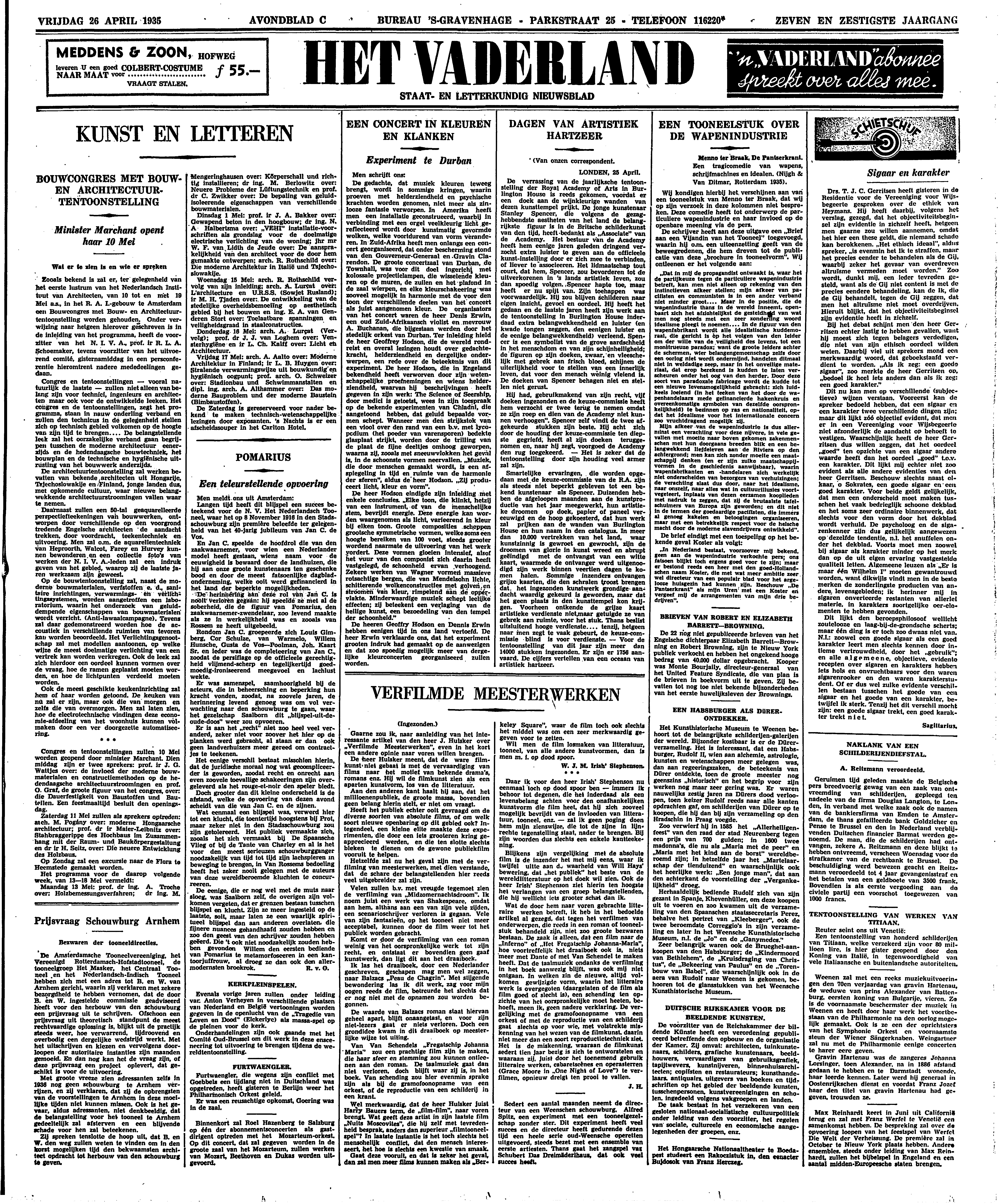 Drs. T.J.C. Gerritsen heeft gisteren in de Residentie voor de Vereeniging voor Wijsbegeerte gesproken over de ethiek van Heymans. Hij heeft daarbij, volgens het verslag, gezegd, dat het objectiviteitsbeginsel zijn evidentie in zichzelf heeft, hetgeen men gaarne zou willen aannemen, omdat het hier een these geldt, die niemand schade kan berokkenen. ‘Het ethisch ideaal’, aldus spreker, ‘is evenmin het Ik te straffen, maar het precies eender te behandelen als de Gij, waarbij zeker het gevaar van overdreven altruïsme vermeden moet worden.’ Zoo wordt, dunkt mij, een ieder tevreden gesteld, want als de Gij niet content is met de precies eendere behandeling, kan de Ik, die de Gij behandelt, tegen de Gij zeggen, dat men het altruïsme niet moet overdrijven. Hieruit blijkt, dat het objectiviteitsbeginsel zijn evidentie heeft in zichzelf.