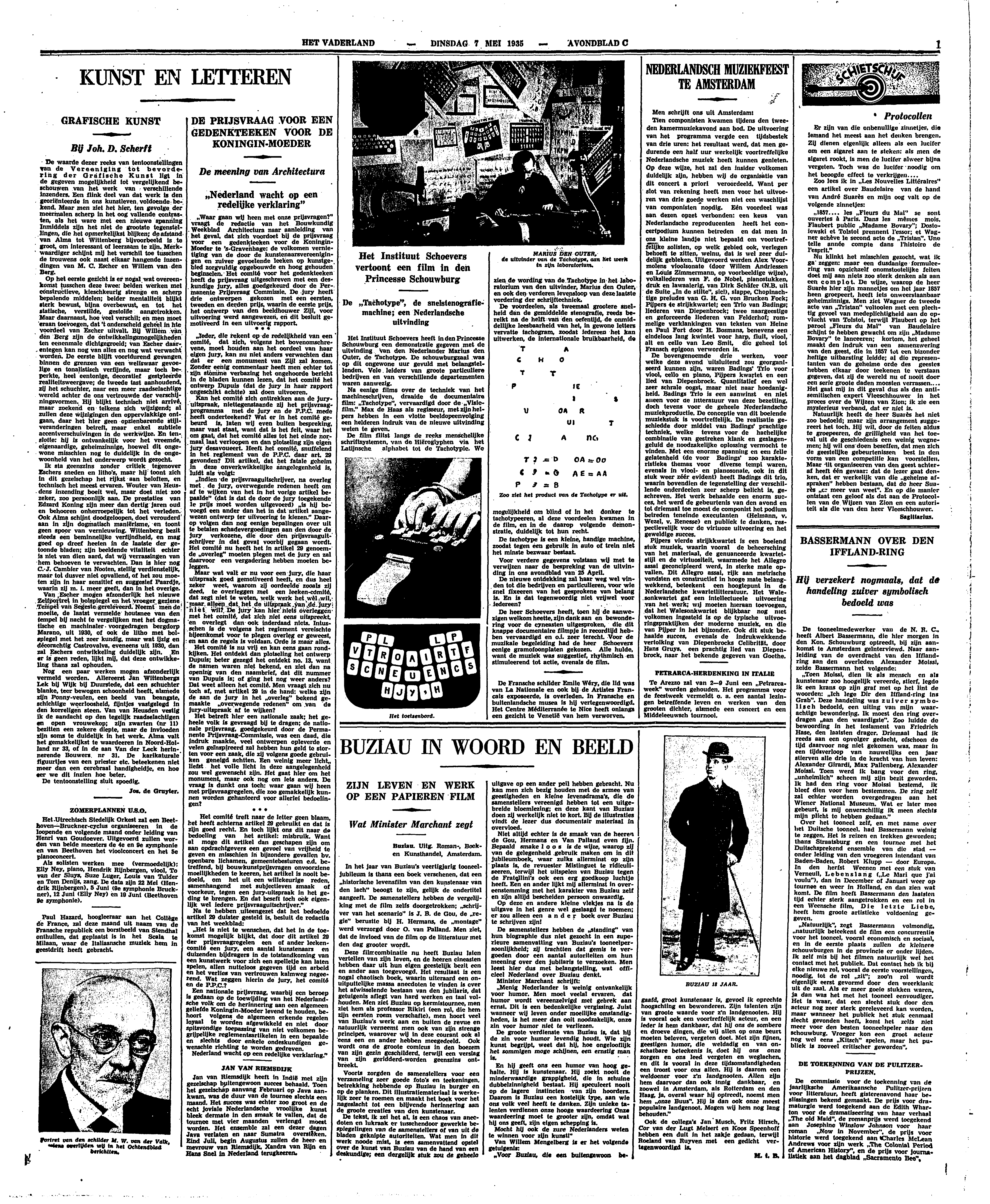 Nu klinkt het misschien gezocht, wat ik ga zeggen: maar een dusdanige formuleering van opzichzelf onomstootelijke feiten doet mij aan niets zoo sterk denken als aan een complot. De wijze, waarop de heer Suarès hier zijn mannetjes om het jaar 1857 heen groepeert, heeft iets onweerstaanbaar geheimzinnigs. Men ziet Wagner de tweede acte van ‘Tristan’ voltooien met een plechtig gevoel van medeplichtigheid aan de opvlucht van Tolstoi, terwijl Flaubert op het parool ‘Fleurs du Mal’ van Baudelaire schijnt te hebben gewacht om zijn ‘Madame Bovary’ te lanceeren; kortom, het geheel maakt den indruk van een samenzwering van den geest, die in 1857 tot een bizonder heftige uitbarsting leidde; al die representanten van de geheime orde des geestes hebben elkaar door teekenen te verstaan gegeven, dat zij de wereld nu of nooit door een serie groote daden moesten verrassen.... Het gaat mij in dit geval dus als den antisemitischen expert Vleeschhouwer in het proces over de Wijzen van Zion; ik zie een mysterieus verband, dat er niet is.