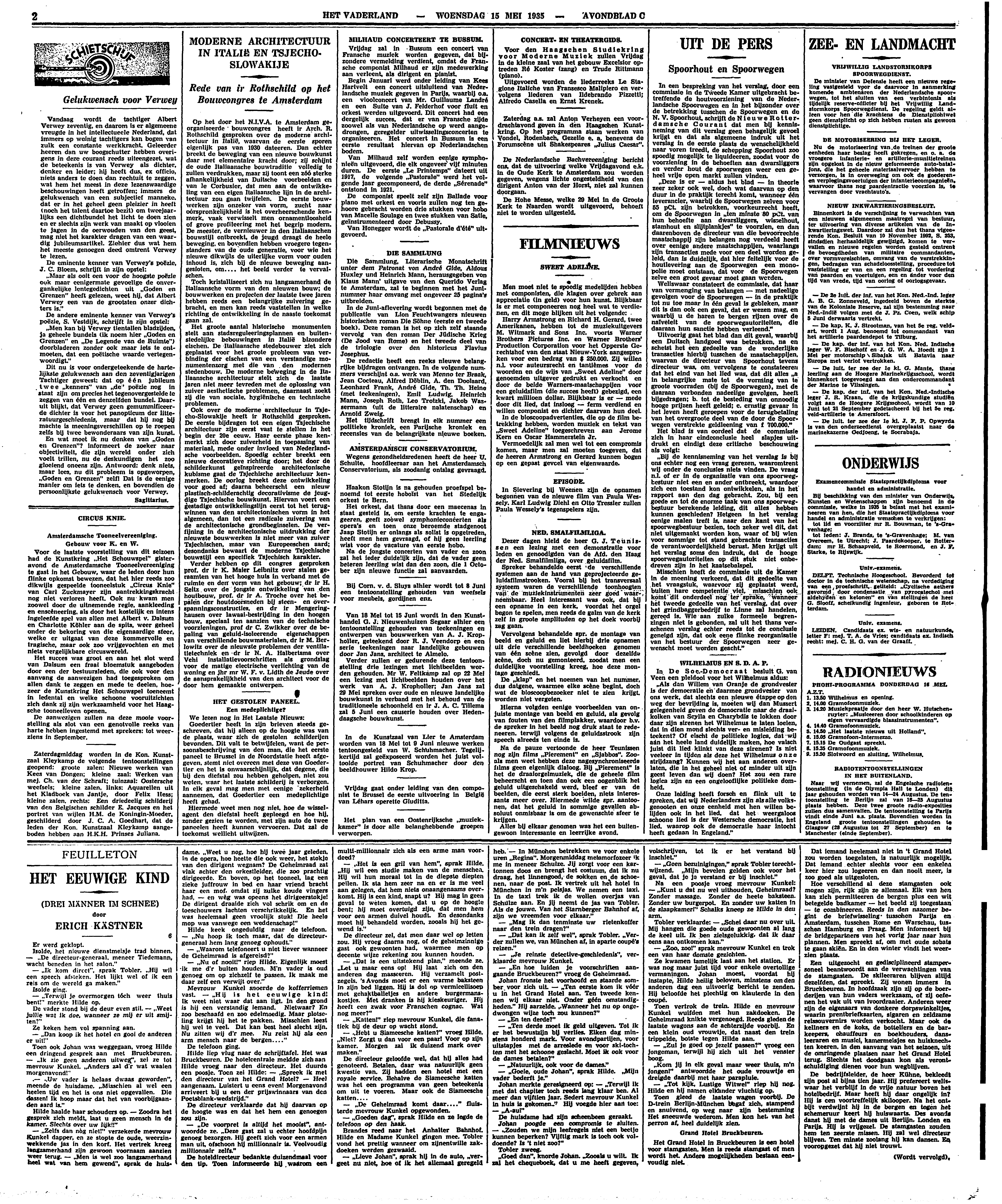 Vandaag wordt de tachtiger Albert Verwey zeventig, en daarom is er algemeene vreugde in het intellectueele Nederland, dat immers op weinig tachtigers kan bogen van zulk een constante werkkracht. Geleerder heeren dan uw boogschutter hebben overigens in deze courant reeds uiteengezet, wat de beteekenis is van Verwey als dichter, denker en leider; hij heeft dus, ex officio, niets anders te doen dan rechtuit te zeggen, wat hem het meest in deze lezenswaardige beschouwingen heeft getroffen; immers de gelukwensch van een subjectief manneke, dat er in het geheel geen pleizier in heeft (noch het talent daartoe bezit) om tweejaarlijks een dichtbundel het licht te doen zien en er slechts zijn werk van maakt op vlooien te jagen in de oerwouden van den geest, mag niet het karakter dragen van een waardig jubileumsartikel. Ziehier dus wat hem het meeste genoegen deed omtrent Verwey te lezen.