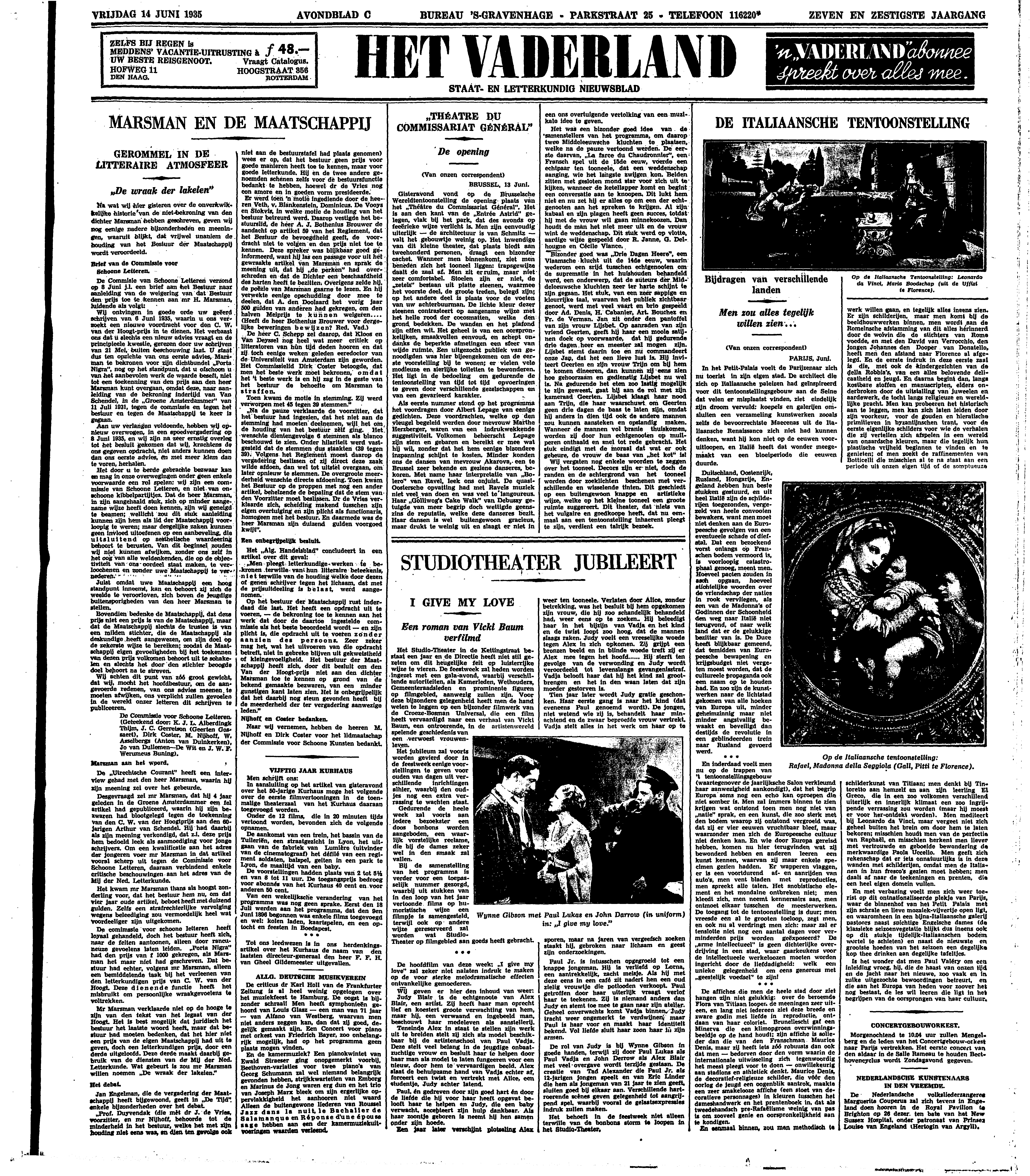 Wij ontvingen in goede orde uw geëerd schrijven van 6 Juni 1935, waarin u ons verzoekt een nieuwe voordracht voor den C.W. van der Hoogt-prijs in te dienen. Het verbaast ons dat u slechts een nieuw advies vraagt en de principieele kwestie, gerezen door uw schrijven van 21 Mei, buiten beschouwing laat. U staat dus ten opzichte van ons eerste advies, Marsman te bekronen voor zijn dichtbundel ‘Porta Nigra’, nog op het standpunt, dat u ofschoon u van het aanbevolen werk de waarde beseft, niet tot een toekenning van den prijs aan den heer Marsman kunt overgaan, omdat deze, naar aanleiding van de bekroning indertijd van Van Schendel, in de ‘Groene Amsterdammer’ van 11 Juli 1931, tegen de commissie en tegen het bestuur en tegen de Maatschappij te keer is gegaan.