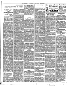 Een in onduidelijk Engelsch gehouden toespraak van den Engelschen gedelegeerde E. Forster bepaalde zich tot een overzicht van misstanden in Engeland en enkele algemeene opmerkingen. Een teleurstelling was de rede van zijn collega Aldous Huxley, die een overigens uiterst critische en zeker interessante voordracht zoo monotoon voorlas, dat het effect uitbleef, uit moest blijven; want niemand slaagde er in het onberispelijke, maar zonder eenig spreektalent voorgedragen Fransch van dezen langen Engelschman geheel te volgen. Juist omdat Huxley de aangewezen man zou zijn geweest om de rechten van het idividualisme te verdedigen tegenover de Russen, was zijn optreden op dit congres (dat men hem niet euvel mag duiden vanwege zijn bijzonder slechte oogen) toch de groote desillusie. Robert Musil, schrijver van, ‘Der Mann ohne Eigenschaften’, sprak als Oostenrijker; eveneens voor een onpolitieke houding van den schrijver, maar eveneens (voor deze zaal) met weinig direct resultaat. Heinrich Mann, die met Jean-Richard Bloch de zitting van Zaterdagavond presideerde en met een ovatie werd begroet, moet nog aan het woord komen, evenals Luc. Durtain, Waldo Frank (Amerika), Anna Seghers, Max Brod, Henri Barbusse e.a. Volledigheidshalve vermeld ik hier nog, dat ik zelf (sprekende na Ilja Ehrenburg, hetgeen op zichzelf reeds een merkwaardige sensatie was) een bepaling van individualistisch standpunt van het begrip ‘vrijheid’ heb trachten te geven en daarbij van de gelegenheid gebruik gemaakt heb om te protesteeren tegen de houding van de Nederlandsche P.E.N.-delegatie te Barcelona.