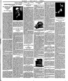 Ik sprak gisteren den Duitschen schrijver Ernst Erich Noth, wiens ‘Tragédie de la Jeunesse Allemande’ een van de beste boeken is over de voorhistorie van het Hitlerregime; ik vroeg hem, of hij als individualist hier niet moest spreken namens zijn Duitsche medestanders. Hij haalde de schouders op en verklaarde, dat het niet den minsten zin had hier nog het woord te nemen. ‘Hier weet men het al’. En inderdaad, zoo is het. Er zijn bepaalde milieus, waar men uit welbegrepen eigenbelang verder zijn mond houdt, omdat men van te voren weet, dat discussie tot niets kan leiden. Men kan dus niet beter doen dan zich voortaan te verheugen in de vele schilderachtige effecten, die een verzameling min of meer vermaarde auteurs altijd wel oplevert. Ik zie b.v. met pleizier den Deenschen schrijver Andersen-Nexö, die met zijn landgenoot Karin Michaelis aanwezig is en voortdurend vervaarlijke pijpen zit te rooken; een typische oude heer, wat stram en militair in zijn voorkomen. En dan kan men niet genoeg krijgen van den emigrant Alfred Kerr, die ook een rede heeft gehouden, die voornamelijk uit weeklagen over eigen lot bestond; Kerr vereenigt in zijn uiterlijk de pose van een negentiendeneeuwschen fat met de deftige ingetogenheid van een predikant; zijn das is een van de hoogtepunten van het Congres te noemen. Dit klinkt als galgenhumor en het is het ook inderdaad; gegeven het feit, dat men van een Congres, waaraan de namen André Gide en André Malraux zijn verbonden, andere dingen had verwacht.