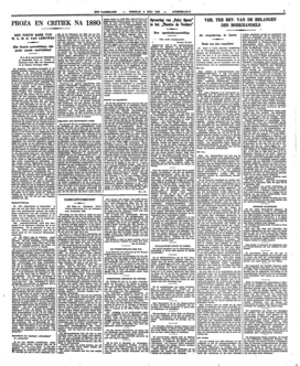 De indeeling naturalisme-romantiek is op zichzelf geenszins nieuw; zij is zelfs zeer gebruikelijk in de letterkundige handboeken; maar zelden wordt zij consequent doorgevoerd, zooals in het nieuwe boek van W.L.M.E. van Leeuwen, een van onze voornaamste litteratuurhistorici, die tevens de litteraire critiekschrijver is van het Enschedésche blad ‘Tubantia’. Van Leeuwen is leeraar, en zijn boeken hebben in verband daarmee allen een paedagogisch karakter; hetgeen niet wegneemt, dat zij in de meeste gevallen zeker evenveel, of meer beteekenis hebben voor volwassenen dan voor adolescenten. Eén leeraar, die b.v. gebruik wil maken van Van Leeuwens uitstekende ‘Korte schets van de ontwikkeling der Nederlandsche Letterkunde’, kan dat boek niet ‘overlaten’ aan zijn leerlingen; hij moet zich zelf eenige moeite willen getroosten om op het peil te blijven van zijn handleiding, maar als hij daar animo voor heeft, zal bij van deze ‘Schets’ ook oneindig veel meer pleizier hebben dan van de talrijke beknopte boekjes vol feiten. Voor een volwassene is echter in het bijzonder dit werk voor zelfstudie van waarde, omdat de auteur vooral in de litteratuur na 1880 bovenmate belezen is. Bij vele litteratuur-historici houdt de elasticiteit des geestes bij een bepaald moment op; de moeilijke taak, om de jongste litteratuur in kaart te brengen, is hun te zwaar of interesseert hun niet. Van Leeuwen echter, die nog betrekkelijk jong is, stelt er een eer in, bij te blijven en het contact met de tijdgenooten niet te verliezen; en waar hij, hoewel uiteraard met bepaalde voorkeuren behept (wie heeft ze niet?), het type is van den rangschikkenden, tot ‘objectiviteit’ geneigden beschrijver der verschijnselen, voor wien het subjectieve voordeel altijd een functie op den achtergrond blijft, is hij bij uitstek de man gebleken om de litteratuurhistorie van de periode na 1880 te teekenen. Hij gaf, behalve de genoemde ‘Schets’, waarin de voorkeur voor die periode ook heel duidelijk is. een afzonderlijk boek over ‘De Nederlandsche Dichtkunst sinds 1880’ en doet thans een nieuw werk het licht zien, waarin hij het proza en de critiek na 1880 behandelt. Een omvangrijke studie, voortzetting en uitbreiding van zijn vroegere boeken, bijgehouden tot het jaar 1935, en dus voor ieder, die zich wil oriënteeren, een onmisbare uitgave. Van Leeuwen heeft hier een bloemlezing van zorgvuldig gekozen typeerende fragmenten gecombineerd met de karakteristieken van de verschillende auteurs, waarin hij zijn opvatting heeft neergelegd; een combinatie, die zuiver economisch gesproken nog het voordeel heeft van voor een groot publiek bereikbaar te zijn. Wat de bruikbaarheid voor Gymnasium en H.B.S. betreft: hier geldt het zelfde als wat ik hierboven opmerkte over zijn ‘Schets’; alleen de leeraar met ambitie en met een behoorlijke klas zal een dergelijk boek voor het onderwijs kunnen hanteeren. In dit artikel wil ik echter vooral de aandacht vestigen op het bestaan van het werk voor volwassenen, voor wie het een zeer welkome inleiding kan zijn.