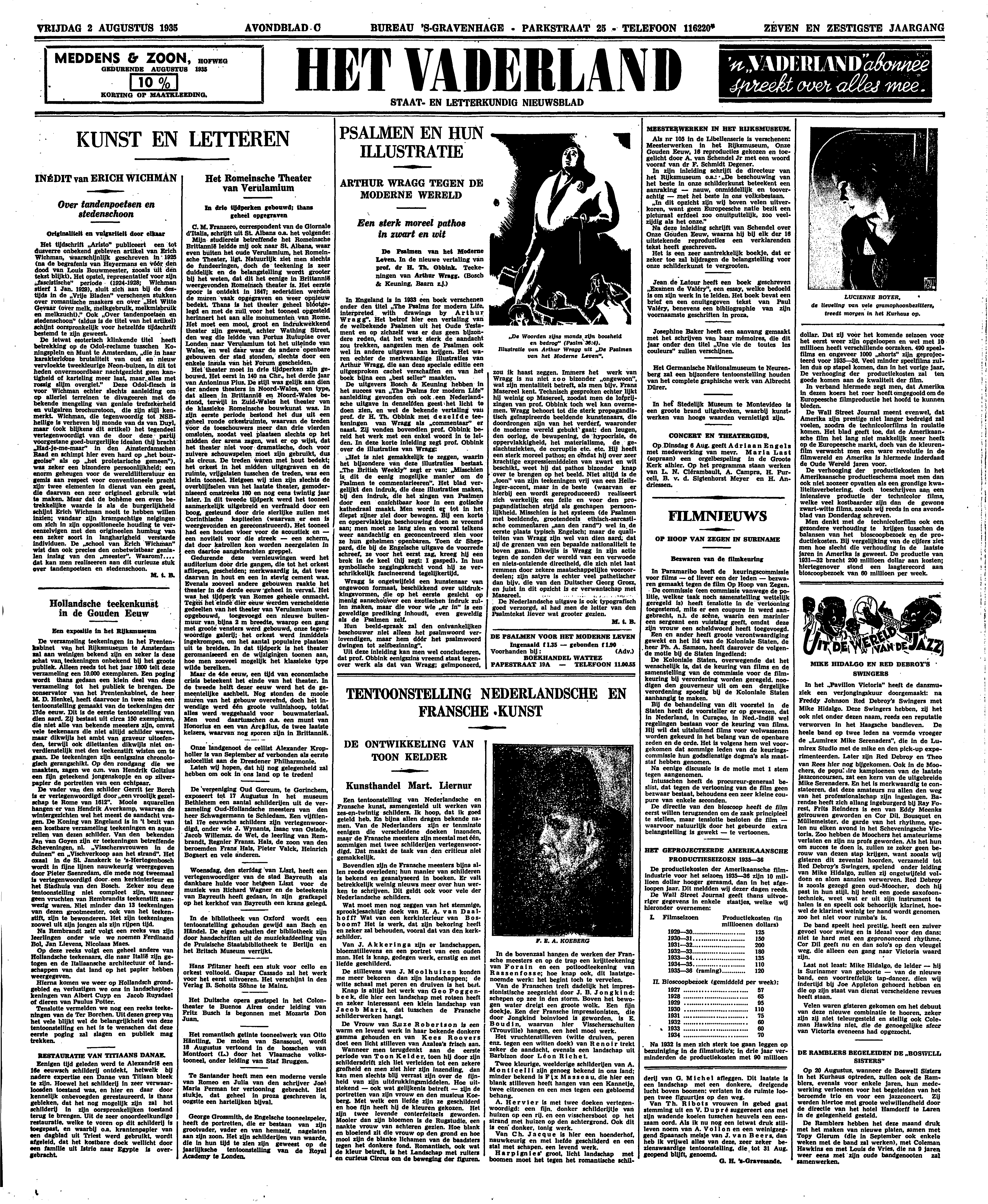 In Engeland is in 1933 een boek verschenen onder den titel ‘The Psalms for modern Life, interpreted with drawings by Arthur Wragg’. Het betrof hier een vertaling van de welbekende Psalmen uit het Oude Testament en op zichzelf was er dus geen bijzondere reden, dat het werk sterk de aandacht zou trekken, aangezien men de Psalmen ook wel in andere uitgaven kan krijgen. Het waren echter de merkwaardige illustraties van Arthur Wragg, die aan deze speciale editie een uitgesproken cachet verschaffen en van het boek bijna een ‘best seller’ maakten.