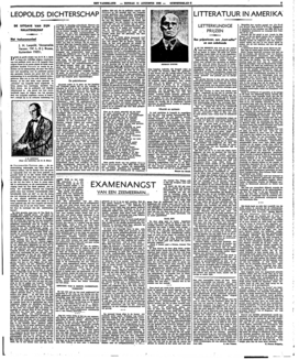 Wat is in de eerste plaats typeerend voor de sierpoëzie integenstelling tot andere vormen van poëzie? Dat de dichter, terwijl hij dicht, de taal nooit gebruikt als middel tot overbrenging van gedachten (begrippen) en gevoelens buiten een ceremonieel om; het taalceremonieel, gevolg van een fijner gehoor voor taalnuances, wordt in cultuurgebieden met een geschiedenis van eeuwen taalontwikkeling voor een bepaalde menschensoort (waartoe Leopold behoorde) een tweede instinct, dat primitiever instincten komt vervangen; deze menschen drukken hun gevoelens dus niet uit op de wijze van de mededeeling, maar zij doen een beroep op alle functies van de taal, die buiten de mededeeling liggen: de beeldende, de muzikale, de associatieve functies, kortom met alle eigenschappen van de taal, die haar tot een ceremonieele handeling tusschen menschen maken. Zijn het dan toch niet hun eigen gevoelens, die de ceremonieele dichters door deze taalwereld uitdrukken? Natuurlijk; maar het is ongeoorloofd op deze ceremonieele gevoelsuiting een etiket te plakken met een philosophische uitlegging, alsof 't ceremonieel in het geheel niet bestond! Ik gebruik de benaming ‘sierpoëzie’, omdat bij deze gevoelsoverbrenging van mensch op mensch de aanvankelijke ‘bedoelingen’ en ‘gedachten’ geheel en al op den achtergrond raken en het taalmedium hoofdzaak wordt. Om daarvan te kunnen genieten, moet men dus taalgevoelig zijn, niet meer en niet minder; wie meer wil zijn, neemt de allures van een ‘kenner’ aan en deelt zichzelf zoodoende in bij een pseudo-élite, wie minder wil zijn, vindt deze poëzie alleen maar onbegrijpelijk en vervelend en de waarheid ligt voor deze gelegenheid in het midden.