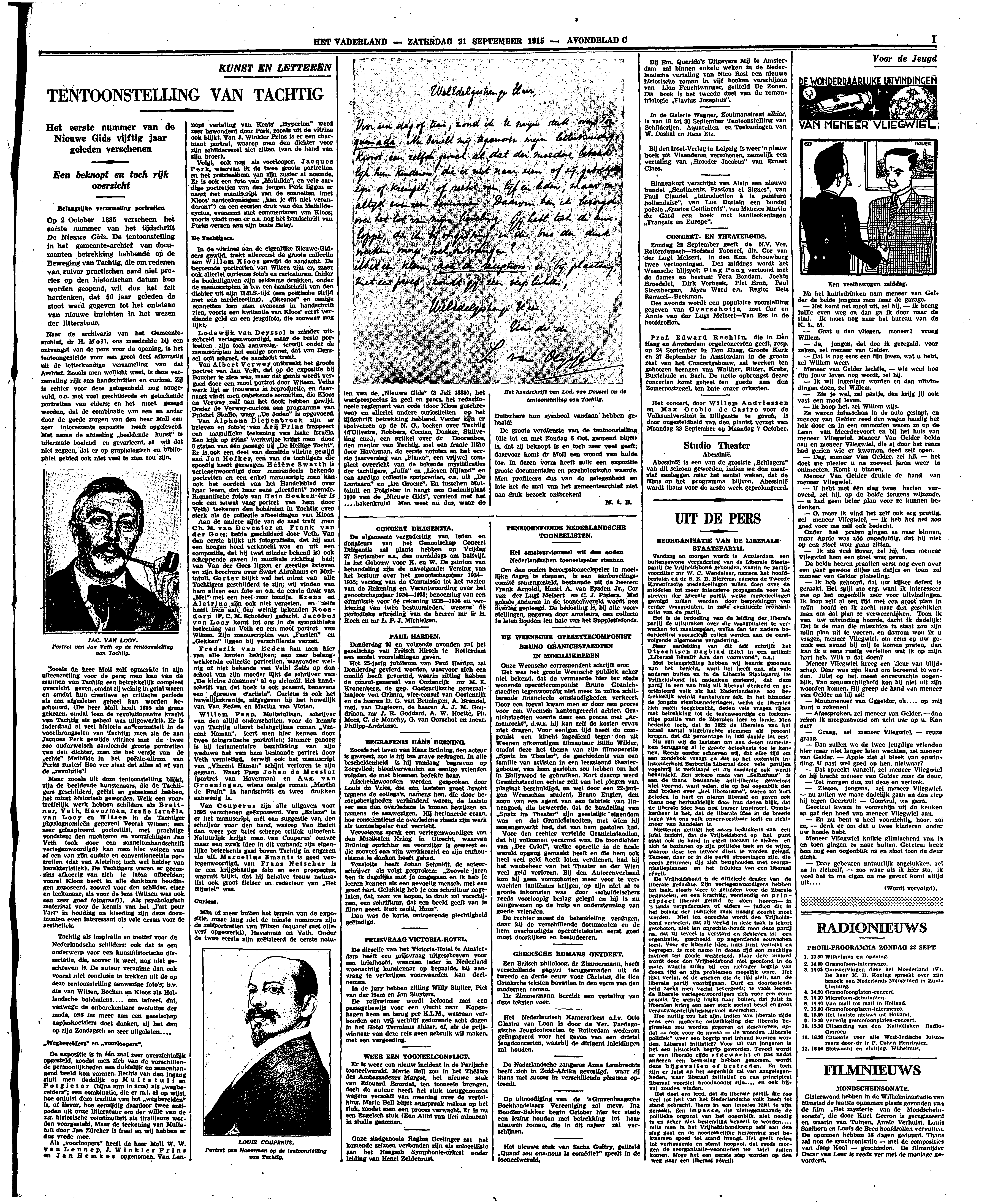 Lodewijk van Deyssel is minder uitgebreid vertegenwoordigd, maar de beste portretten zijn toch aanwezig, terwijl onder de manuscripten het eenige sonnet, dat van Deyssel ooit schreef, de aandacht trekt.