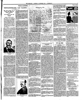 Naar de archivaris van het Gemeentearchief, dr H. Moll, ons meedeelde bij een ontvangst van de pers voor de opening, is het tentoongestelde voor een groot deel afkomstig uit de letterkundige verzameling van dat Archief. Zooals men wellicht weet, is deze verzameling rijk aan handschriften en curiosa. Zij is echter voor deze gelegenheid nog aangevuld, o.a. met veel geschilderde en geteekende portretten van elders; en het moet gezegd worden, dat de combinatie van een en ander door de goede zorgen van den heer Moll een zeer interessante expositie heeft opgeleverd. Met name de afdeeling ‘beeldende kunst’ is uitermate boeiend en gevarieerd, al wil dat niet zeggen, dat er op graphologisch en bibliophiel gebied ook niet veel te zien zou zijn.