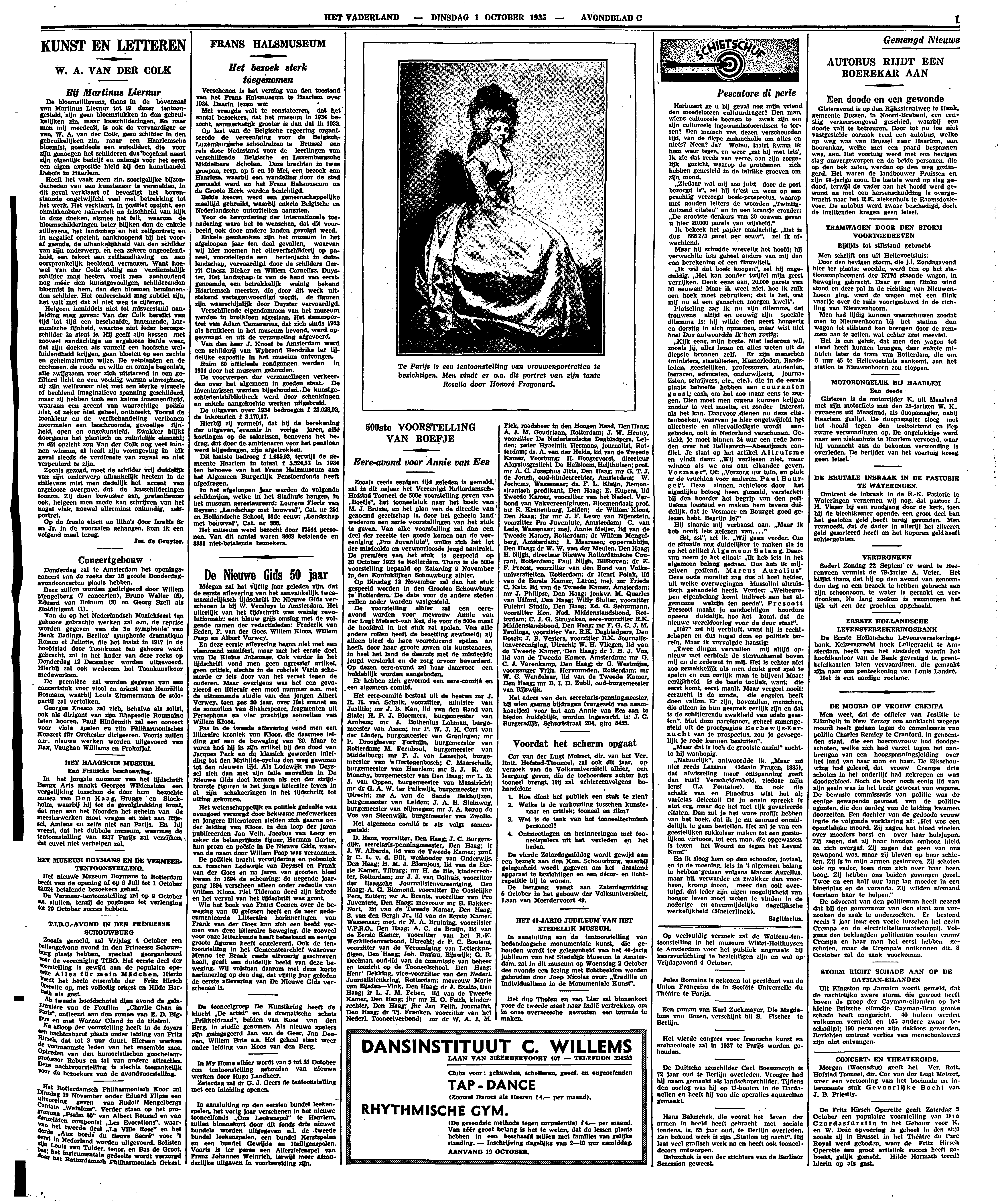 Herinnert ge u bij geval nog mijn vriend den moedeloozen cultuurdrager? Den man, wiens cultureele beenen te zwak zijn om zijn cultureele ingewandsstoornissen te torsen? Den mensch van dezen verscheurden tijd, van de diepe melancholie om alles en niets? Neen? Ja? Welnu, laatst kwam ik hem weer tegen, en weer ‘zat hij met iets’. Ik zie dat reeds van verre, aan zijn zorgelijk gezicht, waarop de problemen zich hebben genesteld in de talrijke groeven om zijn mond.