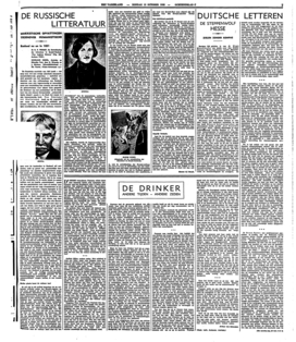 Ik wil mij in dit artikel beperken tot de cultureele evolutie onder het Sowjet-regime, en wel meer speciaal tot de litteratuur. Men kan de Russische litteratuur van na de bolsjewistische omwenteling natuurlijk niet als één geheel beschouwen, onderworpen aan één leidend beginsel; in den laatsten tijd met name betoont Rusland zich aanzienlijk vreindelijker tegenover de eens met zooveel kracht verdoemde individualistische kunst dan enkele jaren geleden; maar dat neemt niet weg, dat de litteratuur van het tegenwoordige Rusland den West-Europeaan toch hoofdzakelijk voor één kernprobleem stelt en wel dit: is de cultuur, en meer in het bijzonder de litteratuur, één van de vele hulpmiddelen bij den ‘opbouw’ van een samenleving, of is zij een luxe, een overschot? Is de cultuur een onderdeel van de techniek (in den ruimsten zin des woords) of staat zij in dienst van een humanistisch, anti-technisch ideaal? Voor den marxistischen mythomaan is dat probleem in het geheel geen probleem, omdat de historisch-materialistische dogmatiek hem de cultuur leert zien als een ‘bovenbouw’ van de economische verhoudingen. Voor den humanistischen Franschman, Julien Benda, van wien in deze courant onlangs een beschouwing over de verhouding van cultuur en weten werd overgenomen, bepaalt daarentegen juist deze vraag het gansche verschil tusschen West-Europa en Rusland. Volgens Benda is cultuur in de eerste plaats eigendom van de onbewuste regionen en dus meer verwant aan onbewuste bewegingen als ademhaling en spijsvertering dan aan het onverzadigbare weten, zooals dat tegenwoordig in Sowjet-Rusland (en begrijpelijkerwijze!) aan de orde is; zijn cultuurbegrip gaat dus lijnrecht in zoowel tegen de democratische als tegen de mechanistische opvatting van cultuur. Het komt mij voor, dat Benda als overtuigd leerling uit de humanistische school bij al zijn scherpzinnigheid vaak de neiging vertoont om het begrip cultuur te beperken naar zijn eigen smaak, maar niettemin is hij in al zijn geschriften een van de belangrijkste vertegenwoordigers van het anti-marxisme, zonder de gewone vooroordeelen van de meeste anti-marxisten.