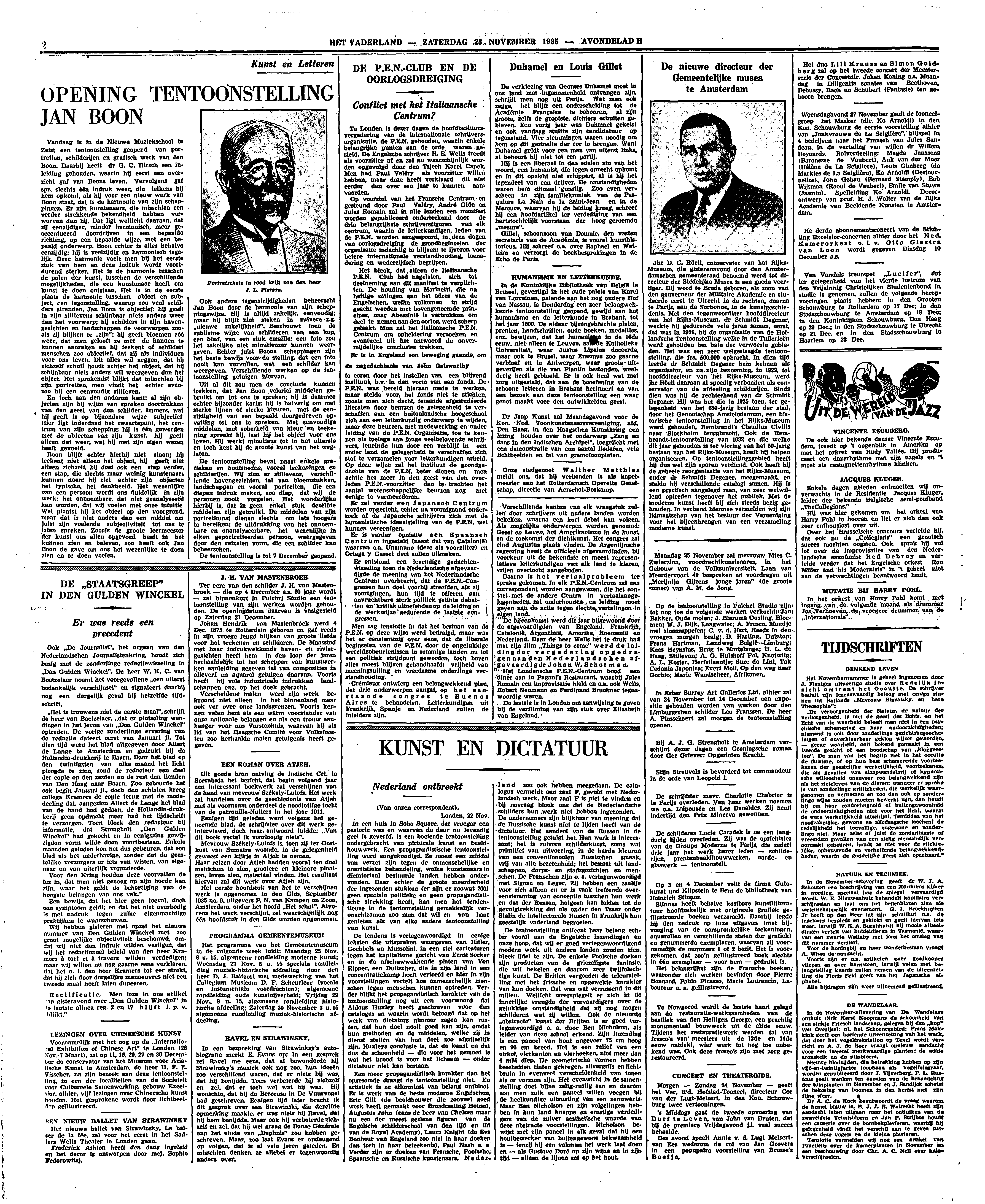 Wij hebben gisteren met opzet het nieuwe nummer van Den Gulden Winckel met zoo groot mogelijke objectiviteit beschouwd, omdat wij niet den indruk wilden vestigen, dat wij het redactioneel beleid van den heer Kramers à tort et à travers wilden verdedigen; maar wij willen nu nog gaarne eens verklaren, dat het o.i. den heer Kramers tot eer strekt, dat hij zich door dergelijke manoeuvres niet een tweede maal heeft laten dupeeren.