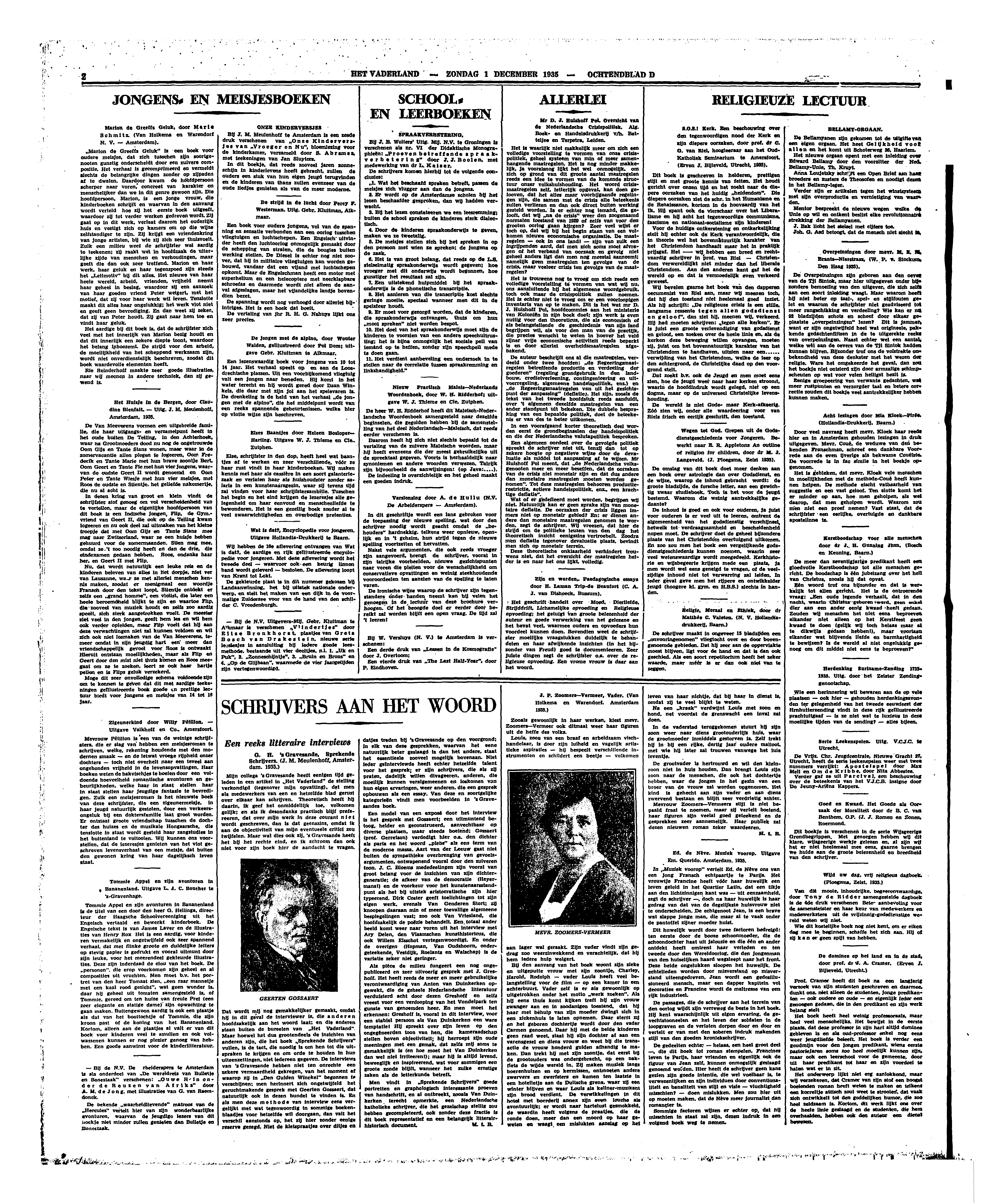 G.H. 's Gravessande, Sprekende Schrijvers. (J.M. Meulenhoff, Amsterdam. 1935.)