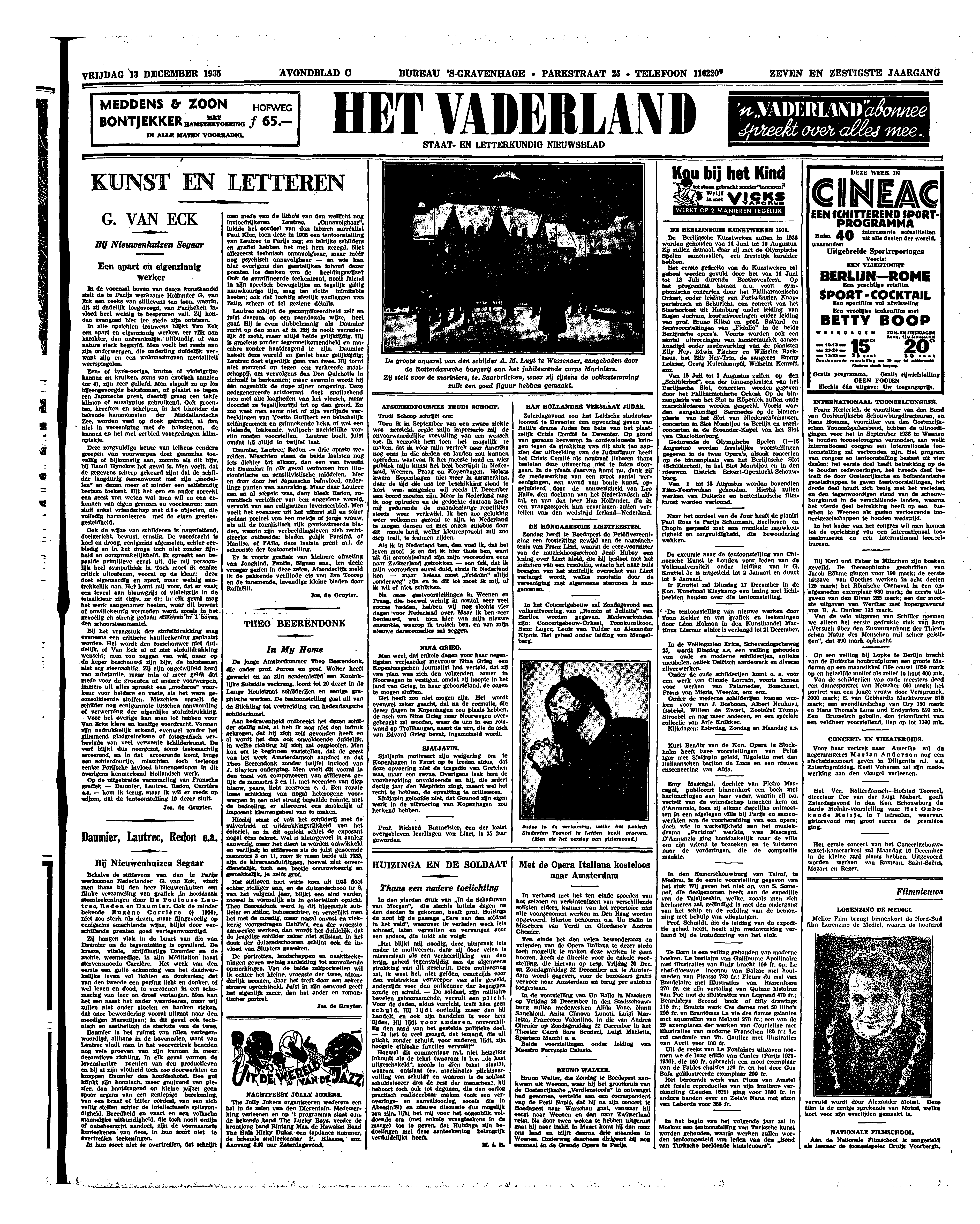 In den vierden druk van ‘In de Schaduwen van Morgen’, die slechts luttele dagen na den derden is gekomen, heeft prof. Huizinga de noot bij de passage ‘Eere aan den soldaat in het veld’, waarover ik verleden week iets schreef, laten vervallen en vervangen door een andere, die luidt als volgt: