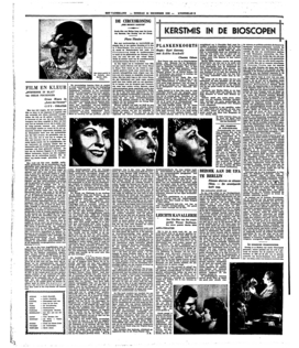 Men kan niet zeggen, dat het probleem van film en kleur to het algemeen is opgelost. Het zijn werkelijk niet alleen technische moeilijkheden, die zich op dit gebied voordoen; men is trouwens al zoo ver, dat een bevredigende weergave van kleur mogelijk is. Maar wat kan men met de techniek doen: dat is steeds weer de vraag geweest, wanneer men technische veroveringen maakte en vooral bij de met geforceerde marschen uitgevoerde campagne van de filmindustrie heeft men dat herhaaldelijk aan den lijve ervaren. De geluidsfilm was er, eer men wist, wat er mee aan te vangen; de film zelf trouwens was er al jaren, eer men eenig begrip toonde van de mogelijkheden, die het instrument als zoodanig inhield. Met de kleurenfilm gaat het al niet anders; geen proefnemingen met fraai gekleurde opnamen, die toch aan de Peinture Bogaers in de fotografie blijven herinneren, kunnen het feit ongedaan maken, dat de verhouding tusschen film en kleur nog slechts hoogst gebrekkig is aangeduid.