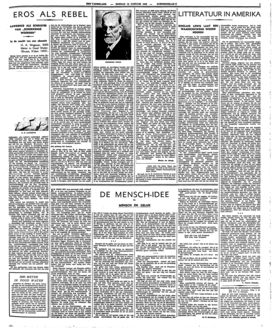 De vorige roman van H.A. Wagener (zijn debuut), dien ik 21 Jan. 1934 op deze plaats besprak, heette Shanghaï en maakte den indruk van een goedkoop stuk litterair fabriekswerk volgens het recept Dos Passos-Ehrenburg-Döblin. Deze nieuwe roman, luisterend naar den geheimzinnigen titel 3000 Mëter in Dood Water, stelt ons voor een ingewikkelder en daarom ook interessanter puzzle. Wagener licht in een aan het boek toegevoegden brief aan de uitgevers die 3000 meter als volgt toe: