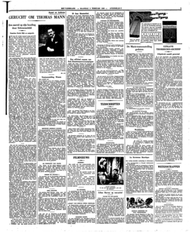 Een andere vraag is, of Schwarzschild niet opneuw de fout begaat de Duitsche emigrantenlitteratuur te overschatten. De ‘Neue Zürcher Zeitung’, die op Schwarzschilds artikel terugkomt (26 Jan.), zegt terecht, dat er in Duitschland ook nog een paar schrijvers zijn, dat Schwarzschild (die de Duitsche litteratuur als ‘komplett ins Ausland transferiert’ beschouwt) blijkbaar ook geen rekening houdt met Zwitsersche en Oostenrijksche auteurs; en het blad neemt daarna de verdediging van Thomas Mann op, aangezien hij niet tot de emigrantenschrijvers wil worden gerekend, voor wie de haat meer geldt dan het streven naar waarheid en gerechtigheid.