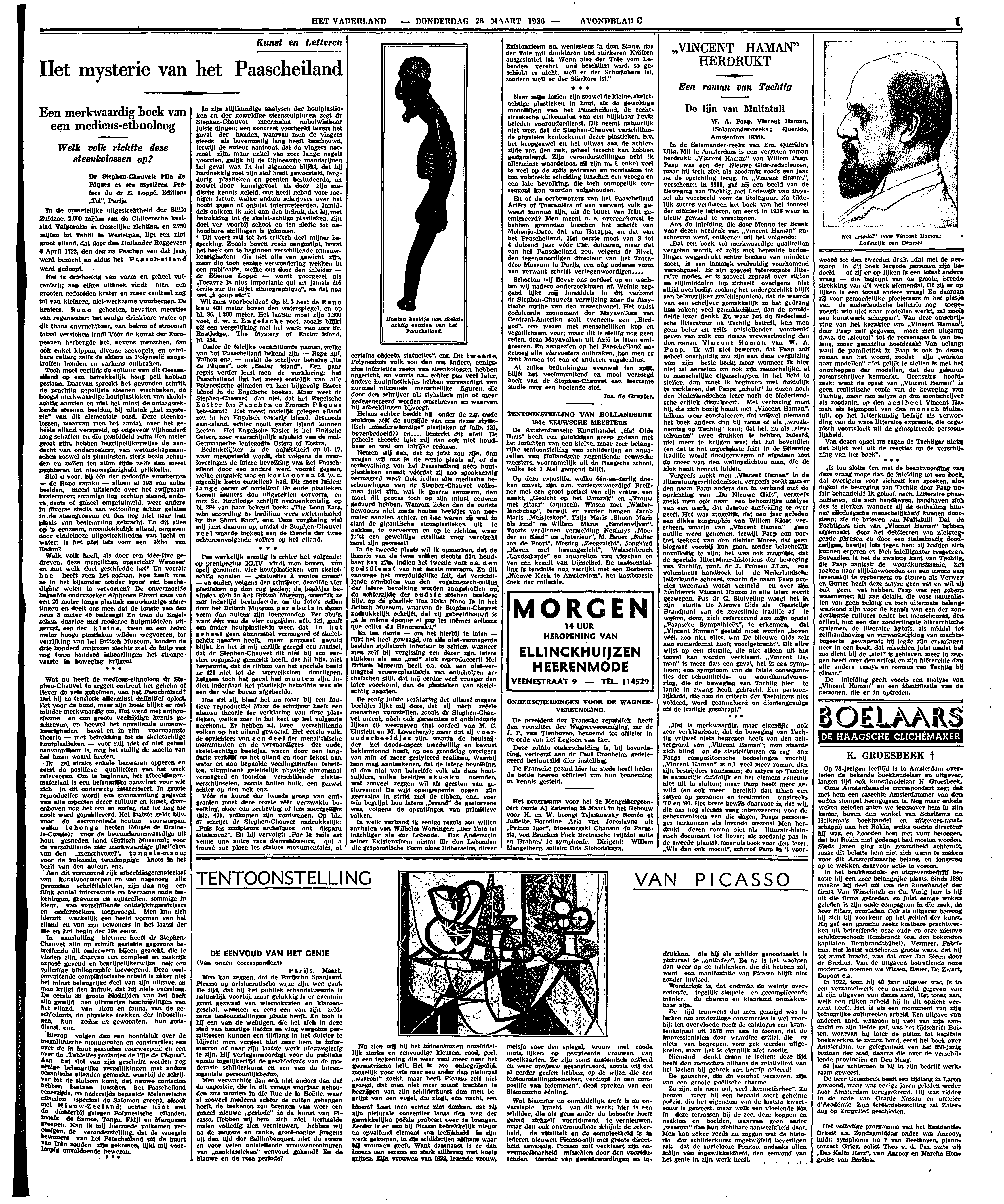 ‘Dat een boek vol merkwaardige qualiteiten vergeten wordt, of zelfs met bepaalde bedoelingen weggedrukt achter boeken van mindere soort, is een tamelijk veelvuldig voorkomend verschijnsel. Er zijn zooveel interessante litteraire modes, er is zooveel gepraat over stijlen en stijlmiddelen (op zichzelf overigens niet altijd overbodig, zoolang het ondergeschikt blijft aan belangrijker gezichtspunten), dat de waarde van een schrijver gemakkelijk in het gedrang kan raken; veel gemakkelijker, dan de gemiddelde lezer denkt. En waar het de Nederlandsche litteratuur na Tachtig betreft, kan men geen beter en zelfs ontstellender voorbeeld geven van zulk een dwaze verwaarloozing dan den roman Vincent Haman van W.A. Paap. Ik wil niet beweren, dat Paap zelf geheel onschuldig zou zijn aan deze verguizing van zijn beste boek; maar wanneer ik hier niet zal aarzelen om ook zijn menschelijke, al te menschelijke eigenschappen in het licht te stellen, dan moet ik beginnen met duidelijk te verklaren, dat Paaps “schuld” in dezen noch den Nederlandschen lezer noch de Nederlandsche critiek disculpcert. Met verbazing moet hij, die zich bezig houdt met “Vincent Haman”, telkens weer constateeren, dat vrijwel niemand het boek anders dan bij name of als “wraakneming op Tachtig” kent; dat het, na als “sleutelroman” twee drukken te hebben beleefd, niet meer te krijgen was; dat het bovendien (en dat is het ergerlijkste feit) in de litteraire traditie wordt doodgezwegen of afgedaan met de sneer van den welingelichten man, die de klok heeft hooren luiden.