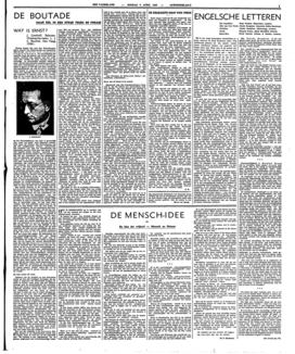 Etc. Men voelt met de klomp aan, dat er menschen zijn, die over zooiets verontwaardigd worden, die het als ‘nonsens’ en ‘flauwiteiten’ afdoen. Waarom? Gr. heeft hen door zijn opzettelijke overdrijving in een vooroordeel aangetast; hij heeft de phrase, dat de krant niet aan sensatie mag doen, gekitteld door, plus royaliste que le roi, de sensatieminnaars in sensatie de loef af te steken en dus een stuk realiteit onthuld, dat ieder krantenlezer in zich heeft en dat niettemin meestal door de phrase wordt gemaskeerd. Ziedaar de techniek van de boutade in een voorbeeld, en wie hieruit wil afleiden, dat de heer Greshoff een moord maar een dingsigheidje vindt, doet er beter aan zich bij den humor van Malle Gevallen te houden.