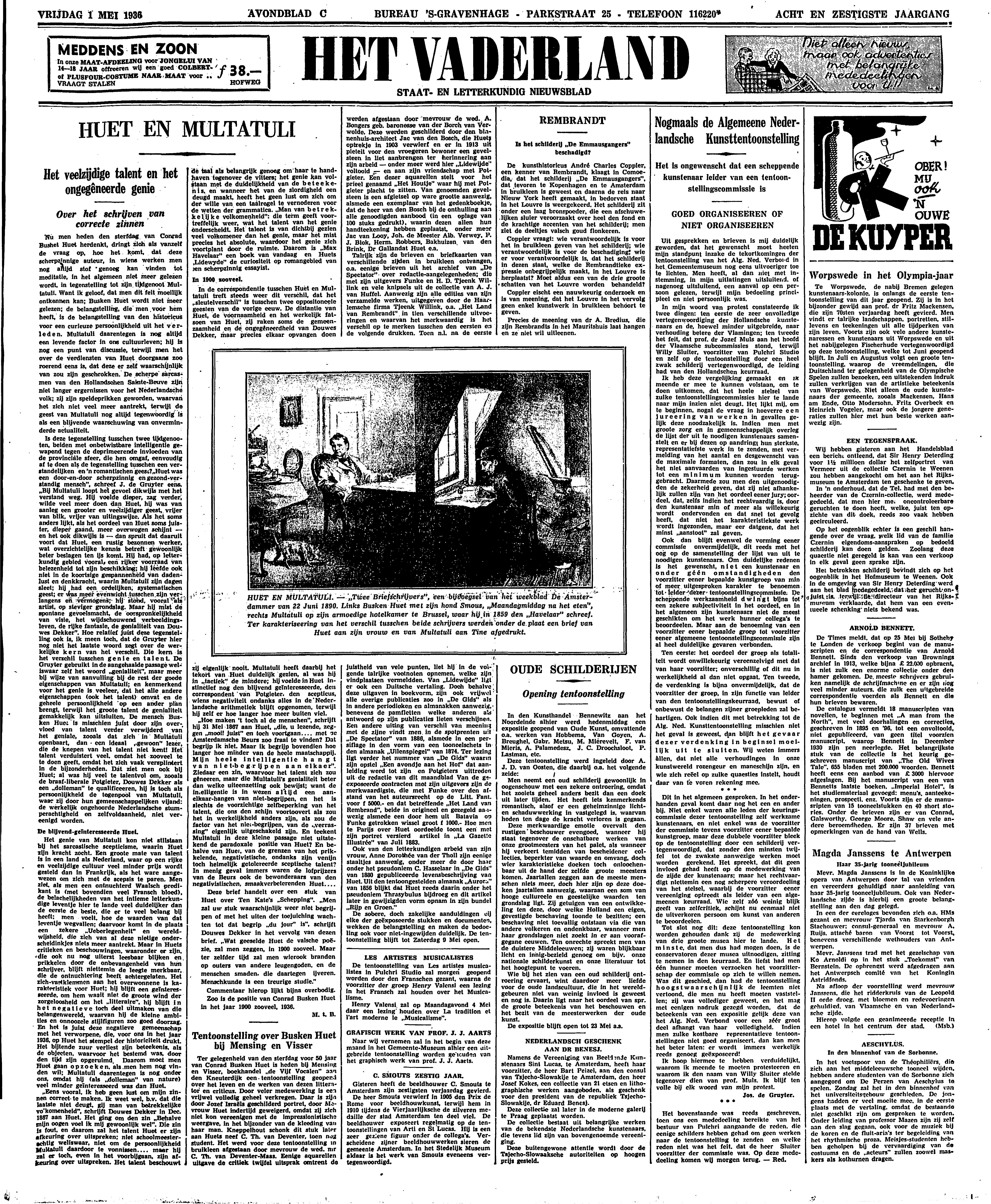 Nu men heden den sterfdag van Conrad Bushet Huet herdenkt, dringt zich als vanzelf de vraag op, hoe het komt, dat deze scherpzinnige auteur, in wiens werken men nog altijd stof genoeg kan vinden tot meditatie, in het algemeen niet meer gelezen wordt, in tegenstelling tot zijn tijdgenoot Multatuli. Want ik geloof, dat men dit feit moeilijk ontkennen kan; Busken Huet wordt niet meer gelezen; de belangstelling, die men voor hem heeft, is de belangstelling van den historicus voor een curieuze persoonlijkheid uit het verleden. Multatuli daarentegen is nog altijd een levende factor in ons cultuurleven; hij is nog een punt van discussie, terwijl men het over de verdiensten van Huet doorgaans zoo roerend eens is, dat deze er zelf waarschijnlijk van zou zijn geschrokken. De scherpe sarcasmen van den Hollandschen Sainte-Beuve zijn niet langer ergernissen voor het Nederlandsche volk; zij zijn speldeprikken geworden, waarvan het zich niet veel meer aantrekt, terwijl de geest van Multatuli nog altijd tegenwoordig is als een blijvende waarschuwing van onverminderde actualiteit.