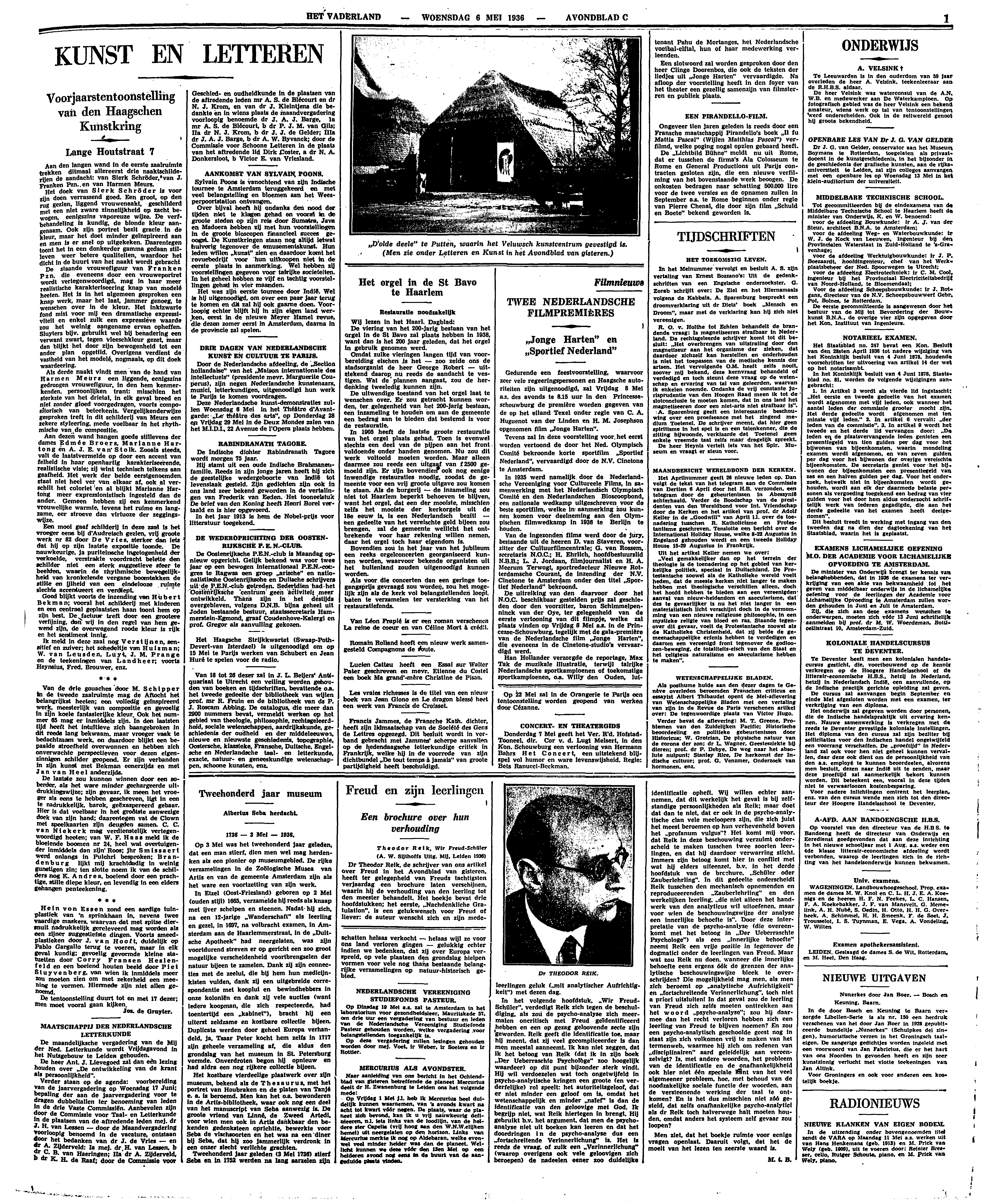 Dr Theodor Reik, de schrijver van ons artikel over Freud in het Avondblad van gisteren, heeft ter gelegenheid van Freuds tachtigsten verjaardag een brochure laten verschijnen, waarin hij de verhouding van den leerling tot den meester behandelt. Het boekje bevat drie hoofdstukken; het eerste, ‘Nachdenkliche Gratulation’, is een gelukwensch voor Freud of liever: de auteur wenscht zich en zijn medeleerlingen geluk (‘mit analytischer Aufrichtigkeit’) met dezen dag.