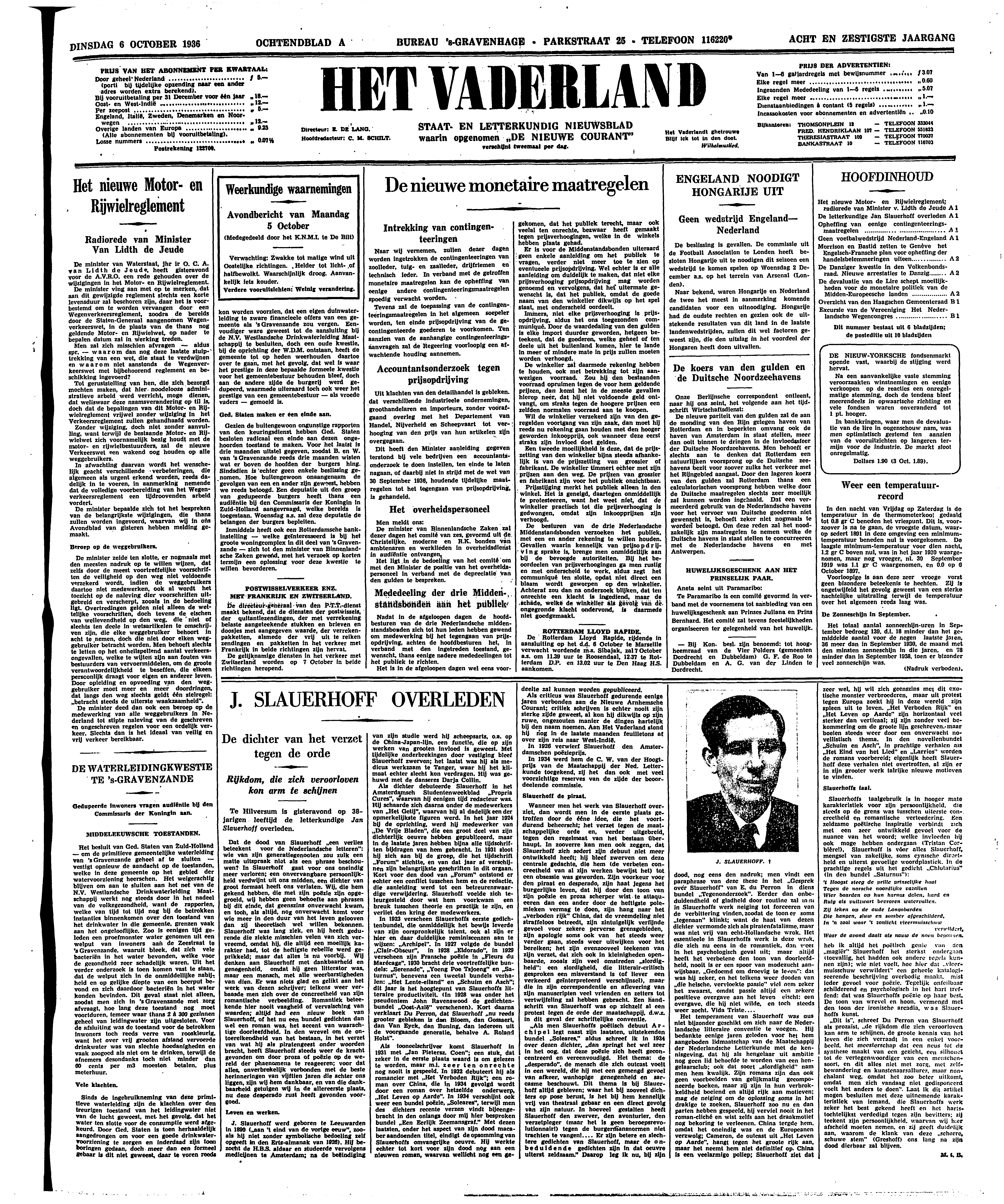 Te Hilversum is gisteravond op 38-jarigen leeftijd de letterkundige Jan Slauerhoff overleden.