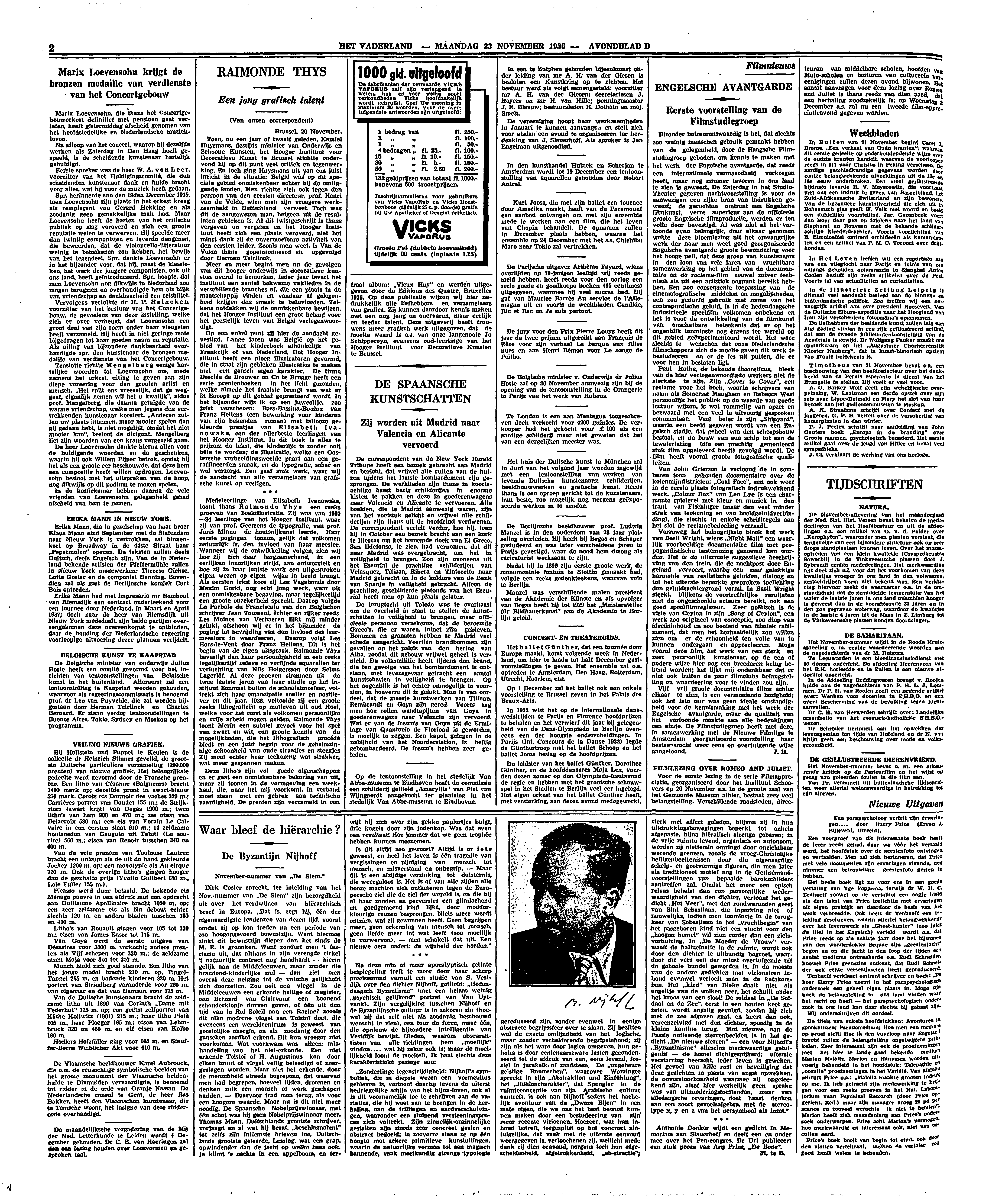Na deze min of meer apocalyptisch getinte bespiegeling treft te meer door haar scherp preciseerend vernuft een studie van S. Vestdijk over den dichter Nijhoff, getiteld: ‘Hedendaagsch Byzantisme’ (met een helaas weinig ‘psychisch gelijkend’ portret van Van Uytvank). Zijn vergelijking tusschen Nijhoff en de Byzantijnsche cultuur is in zekeren zin (hoewel hij dat zelf niet als zoodanig beschouwd wenscht te zien), een tour de force, maar één, die opnieuw de bijzondere intelligentie van Vestdijk bewijst. (Reden, waarom obscurantisten van alle richtingen hem ‘moeilijk’ vinden.... wat hij zeker ook is; maar de moeilijkheid loont de moeite!). Ik haal slechts deze karakteristieke passage aan: