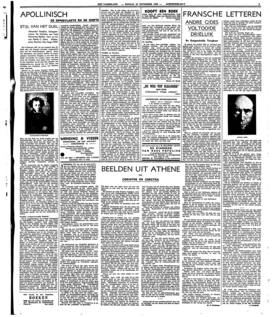 Zoowel in als buiten Rusland maakt men zich op om dien dag te herdenken; en daarom reeds is het bijzonder de moeite waard er de aandacht op te vestigen, dat deze Poesjkin niet alleen klassiek is geworden en onder de marmeren standbeelden is bijgezet, maar ook nog gelezen kan worden, om niet te zeggen moet worden. In Nederland is met dat al zijn werk vrijwel onbekend; men schijnt tot dusverre niet de behoefte te hebben gevoeld om zich te rehabiliteeren voor wat een Nederlandsch gezant in alle onschuld bedreef, toen hij een handig pistoolschutter adopteerde, die volgens den ritus van het duel een einde maakte aan een wonderbaarlijk rijk leven van iemand, die zeker nog meer genie had dan talent. Dat de uitgever Boucher het aandurft één van zijn fraaie Folemprise-uitgaven aan de novellen van Poesjkin te wijden, vooruitloopend op de herdenking in het komend jaar, is dus een zaak, die nog van meer belang is dan het jubileum zelf; er worden zooveel jubilea gevierd van honderdste sterfdagen, waarbij niemand zich nog iets voor kan stellen dan een gezicht van een plaatje en een paar data en anecdotes uit een krantenartikel, dat een herdenking met een herdruk van werken als begeleidend verschijnsel hartelijk toegejuicht verdient te worden.