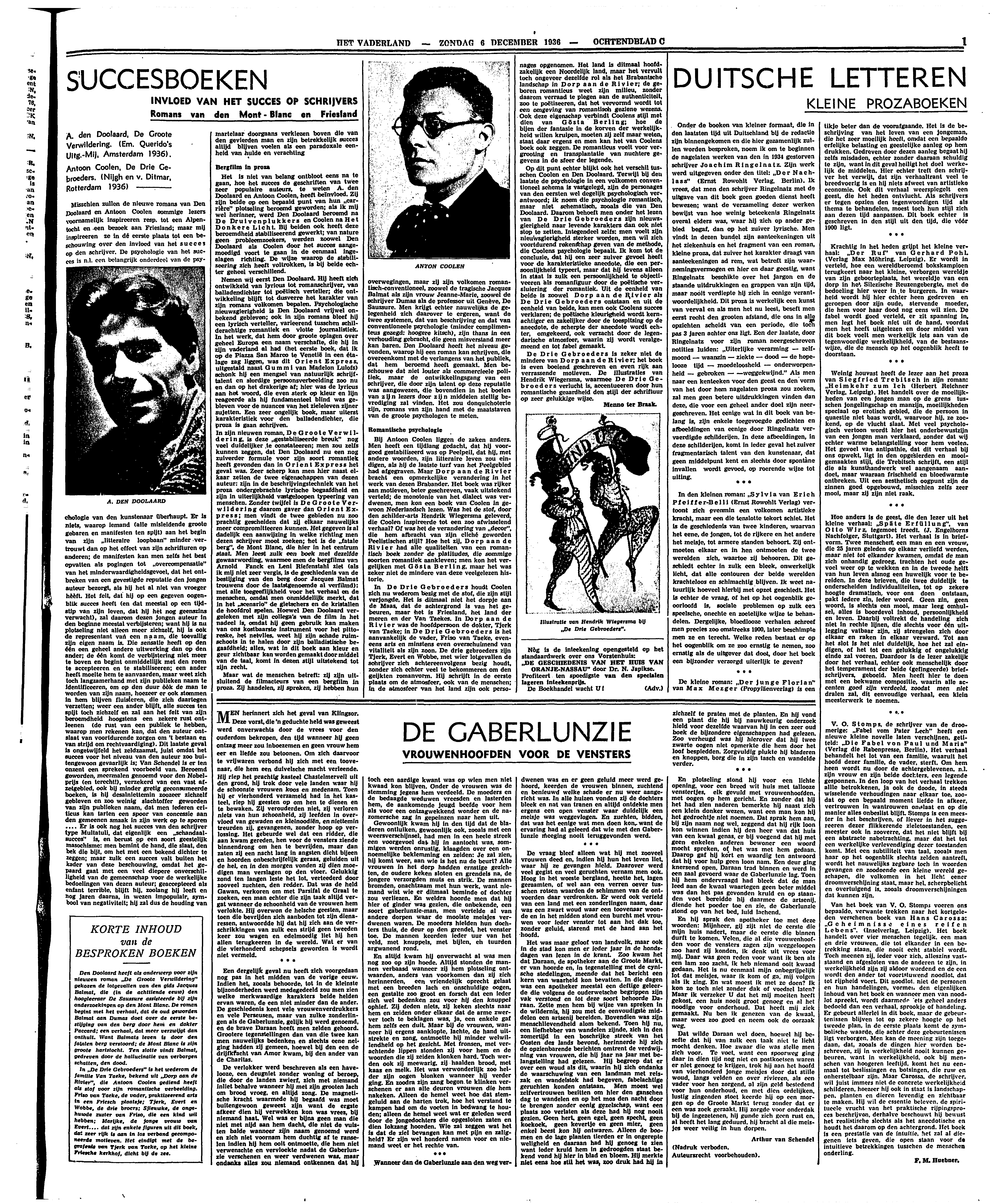 A. den Doolaard, De Groote Verwildering. (Em. Querido's Uitg.-Mij, Amsterdam 1936). Antoon Coolen, De Drie Gebroeders. (Nijgh en v. Ditmar, Rotterdam 1936) -