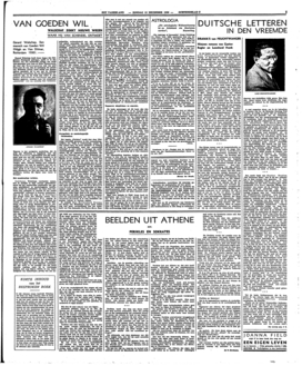 Celibaat, Walschaps voorlaatste roman, heb ik destijds in deze courant gekarakteriseerd als een meesterlijke combinatie van epische zakelijkheid en psychologische intuïtie. Juist omdat de combinatie van deze twee factoren zeer zeldzaam is, meende ik het woord ‘meesterlijk’ volkomen te kunnen verantwoorden; en ik meen dat nog, nu ik Celibaat heb gelegd naast den nieuwen roman, Een Mensch van Goeden Wil, waarop ik die qualificatie zeker niet van toepassing zou achten, al vindt men er de talenten van Walschap zeker in terug. Meesterlijkheid is ‘einmalig’, en een schrijver behoeft onze belangstelling niet te verliezen, wanneer hij niet met meesterwerken om zich heen strooit. Na de lectuur van Celibaat heb ik mij trouwens ook afgevraagd, hoe deze auteur in deze richting nog iets volmaakters zou kunnen presteeren; dit boek had alle kenmerken van een afsluiting (Adelaïde-Eric-Carla-Trouwen-Celibaat); het thema van ontbinding en ondergang leek hier met zooveel magistrale soberheid verantwoord, dat een voortzetting van dezen stijl gemakkelijk had kunnen ontaarden in een procédé. (Hoezeer dit procédé epigonen kan aantrekken, is inmiddels reeds gebleken uit een in het voorjaar verschenen boekje van Roest Crollius, waarin men den stijl der korte, geladen zinnetjes mëesterlijk vond... geplagieerd!). Van dat feit is Walschap zich blijkbaar ook bewust geweest; althans zijn nieuwe roman heeft een geheel anderen toon, die alleen al door den veel langeren titel wordt gesymboliseerd. Tot dusverre waren de romans van Walschap even beknopt als hun titel; Een Mensch van Goeden Wil is daarentegen een roman van veel grooter volume, en het verschil in stijl met de vorige boeken is precies het verschil tusschen de titels Celibaat en Een Mensch van Goeden Wil. Resoluut is Walschap uit het stadium der meesterlijke bereiktheid gestapt, om zich aan een anderen opzet te wagen; hij heeft daardoor vermeden, dat zijn werk in het procédé van het korte zinnetje vastliep, maar hij is, voorloopig althans, ook nog blijven steken in een tweeledigheid van bedoelingen, gevolg van een begrijpelijke verbondenheid aan zijn verleden van episch naturalist, dat zich niet op commando heeft laten samensmelten met nieuwe, duidelijk subjectief-gerichte intenties. Want terwijl in Celibaat de hoofdpersoon (André d'Hertenfeldt, het ‘Heerken’) in zijn tragische realiteit voortkomt uit de objectieve beschrijving van het milieu, de erfelijkheid en de individueele beleving daarvan in den enkeling, is in Een Mensch van Goeden Wil het ‘programma’ van den auteur reeds op de eerste bladzijde duidelijk merkbaar; hij wil in den held van zijn roman, den boerenjongen Thijs Glorieus, den vertegenwoordiger teekenen van het streven naar rechtvaardigheid: rechtvaardigheid natuurlijk niet in den formalistischen zin van het woord, maar rechtvaardigheid als instinctief verzet tegen onrecht, dat in den rechtvaardige een gevoel van physiek lijden doet ontstaan. Deze rechtvaardigheid is dan ook minder een ethische qualiteit dan een instinct, dat het compromis en de listige berekening vanzelf uitsluit; zij wordt niet verworven door onderdrukking van oorspronkelijke driften, door gehoorzaamheid aan voorschriften, maar zij ontwikkelt zich met de groeiende persoonlijkheid mee. Het lijden door onrecht, dat men ziet begaan, is, zooals gezegd, het grondmotief van dezen drang naar gerechtigheid. Thijs stelt daarom op school vooral belang in het verhaal van Jozef door zijn broeders verkocht en hij haat de Romeinen, die België veroverden, dat niet van hen was. Dit partijkiezen voor den zwakke wordt voor Thijs, die zelf een sterk lichaam heeft, de vervulling van het leven; hij wordt de patroon van Let, een onnoozel, meisje, waarmee hij later trouwt, hij is de naïeve en tegelijk de onverwoestbaar krachtige, hij is een representant van een consequent Christendom, maar een Christendom, dat meer evangelisch is dan maatschappelijk. ‘En van christenen gesproken’, zegt Thijs' tweede vrouw Rosa, ‘ik doe alle dagen mijn best, maar ik ben het niet, en gij doet ook uw best, meneer pastoor en gij zijt het ook nog niet, maar Thijs, zei ze, ik ken Thijs van kindsaf, Thijs, dat is een christen.’