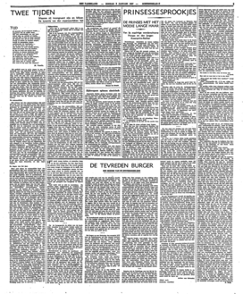 Maar niet alleen de automobilist kent den persoonlijken tijd; men ontdekt hem ook, waar men hem het minst zou verwachten; in de officieele tijdsrekening. Wie meent, dat hij met het jaar heeft afgedaan door te constateeren, dat het 365 dagen heeft (eventueel nog te berekenen in uren, minuten en seconden) vergist zich; het jaar is ook een drama, dat gehoorzaamt aan spanningen, die op geen enkelen kalender worden vermeld. Ik herinner mij uit mijn kinderjaren, dat de laatste dagen van het jaar (door de herdenkingssfeer natuurlijk stevig geladen met dramatische verwachtingen) voorbijkropen; zij werden als het ware samengeperst tusschen Kerstmis en Oudejaar, zaten daar bij elkaar als een troep grauwe vogels met lamme vleugels, weigerend om op te vliegen zelfs bij een pistoolschot. De onpersoonlijke tijd noteert ook van 26 tot 31 December eenvoudig enkele data, maar de persoonlijke tijd verzet zich; het jaar sterft, zegt men, het verzet zich nog tegen het onvermijdelijke, het klampt zich vast aan de Kerstdagen; alles beelden uit de sfeer van het drama, met zijn spanningen, zijn peripeties, zijn verwachtingen. Bij het Nieuwejaar daarentegen scheen de persoonlijke tijd zich van al deze remmen te hebben bevrijd; het was, als trad men in een wereld van overvloed aan onvoltooid toekomenden tijd, waarmee men volstrekt niet zuinig behoefde te zijn; het ging weer van een leien dakje, er kwam geen eind aan den voorraad, er was weer licht en vormeloosheid in de dagen gekomen.. Voor anderen zal de persoonlijke tijd zich in deze dagen weer totaal anders doen gelden; dat hangt af van zijn aanleg, zijn opvoeding en van zijn persoonlijke verwachtingen; maar een drama is er, en niet alleen in deze, door tradities tot dramatiek voorbeschikte dagen van het jaar. De onpersoonlijke kalender is hier hoogstens een handleiding om in het maatschappelijk gareel te kunnen blijven loopen; want spreekt een kalender van den tijd der gezonden, der zieken, der blinden, der dooven, der lammen, der klerken, der clercken, der militairen, der predikanten, der baliekluivers, der journalisten? Wat weet b.v. de militair van het tijdsdrama van den journalist, en wat weet de baliekluiver van den persoonlijken tijd, waarin een stootbrigadier leeft? Toch is het ‘dezelfde’ tijd, die verdaan wordt over de leuning van een brug en in het zweet van een twintigurigen arbeidsdag. Dezelfde.... onpersoonlijke tijd, masker voor tallooze uiterstpersoonlijke tijden, Koffie-Hag-nerveus-gejaagde persoonlijke tijden, langzaam-slenterend-kabbelend-zanikend-persoonlijke tijden. O, welk een drama's trachten wij toch te ontduiken door op kalenderbriefjes te vertrouwen! ‘De wanhoop en de welsprekendheid in de gebaren van de dingen’: hoezeer hebben wij ze weggedrukt uit het officieele leven, door ruimtematen aan te leggen aan persoonlijk bezit! De ruimte (d.w.z. het kalenderbriefje, de wijzerplaat van de klok en soortgelijke instrumenten van ruimtetyrannie) fungeert hier als de dwang van een dictator, die belang heeft bij gelijkschakeling der gevoelens; men denke den tijd, aldus deze oekase van den ruimte-Goebbels, uitsluitend in kantoortijd en arbeidsdag. Maar met dat al ontspringt de persoonlijke tijd toch telkens weer den dans: ook de kantoortijd is een persoonlijk drama, om van den achturigen arbeidsdag maar niet te spreken....