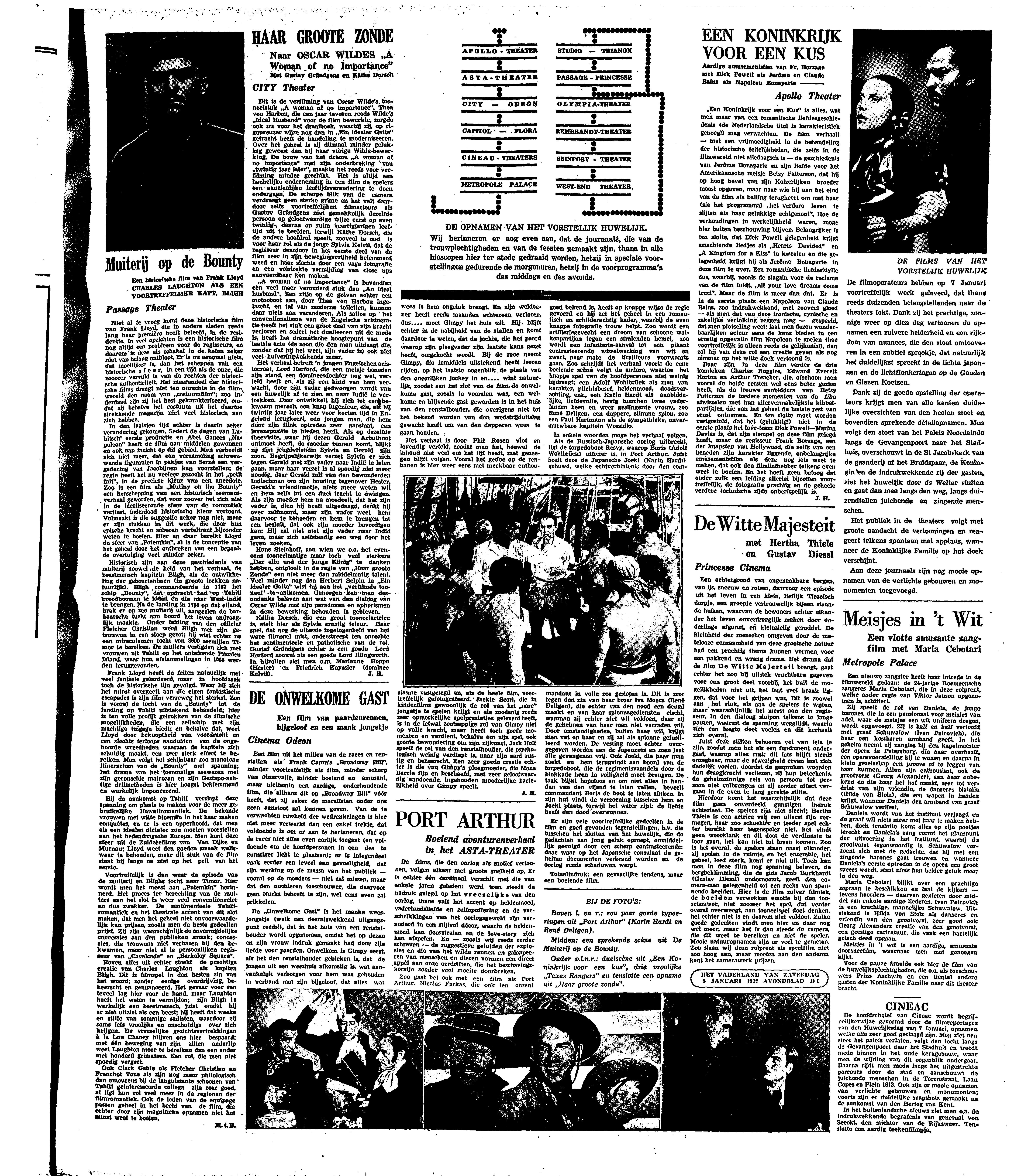 Voortreffelijk is dan weer de episode van de muiterij en Blighs tocht naar Timor. Hier wordt men het meest aan ‘Potemkin’ herinnerd. Het proces ter berechting van de muiters aan het slot is weer veel conventioneeler en dus zwakker. De sentimenteele Tahiti-romantiek en het theatrale accent van dit slot maken, dat men het geheel niet onvoorwaardelijk kan prijzen, zooals men de beste gedeelten prijst. Zij zijn waarschijnlijk de onvermijdelijke concessies aan den publieken smaak; concessies, die trouwens niet verbazen bij den bekwamen, maar niet al te persoonlijken regisseur van ‘Cavalcade’ en ‘Berkeley Square’.