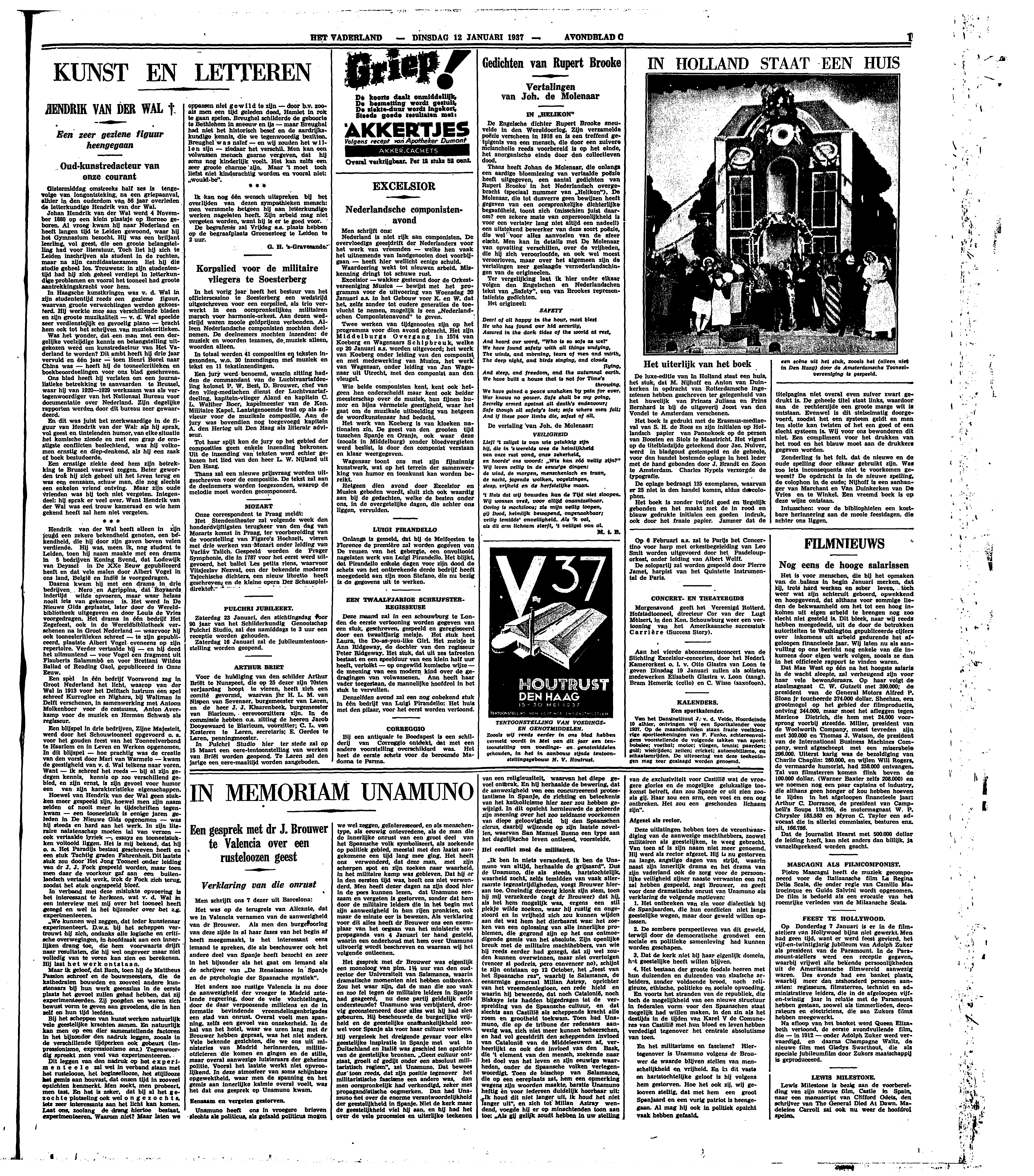 De Engelsche dichter Rupert Brooke sneuvelde in den Wereldoorlog. Zijn verzamelde poëzie verscheen in 1918 en is een treffend getuigenis van een mensch, die door een zuivere melancholie reeds voorbereid is op het einde, het anorganische einde door den collectieven dood.