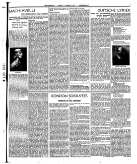 Een bezwaar, dat men niet alleen tegen deze ‘vie romancée’, maar tegen het genre als zoodanig kan aanvoeren, is, dat de auteur in zijn ijver om den held zoo dicht mogelijk in de nabijheid van den modernen gemiddelden lezer te brengen, de smakelijkheid van de vertelling boven de documentatie stelt; men weet dus nooit met zekerheid, of Valeriu Marcu het vertelde uit een historische bron dan wel uit zijn duim put (zuigt). Zoo vindt men in dit boek een smakelijke beschrijving van Machiavelli als straatjongen. Een zeer aardig en kleurig tafereel; maar waar heeft Marcu het vandaan? Bij mijn weten is er over Machiavelli's privé-leven tot zijn zeven-en-twintigste jaar niets bekend; een zijner biografen (Kemmerich) zegt, dat deze periode in het diepste duister is gehuld. Heeft Marcu nu een nieuwe bron aangeboord, of psychologiseert hij hier op eigen houtje? De schrijvers van het genre ‘vie romancée’ achten het overbodig van zulke ‘kleinigheden’ rekening en verantwoording te doen.